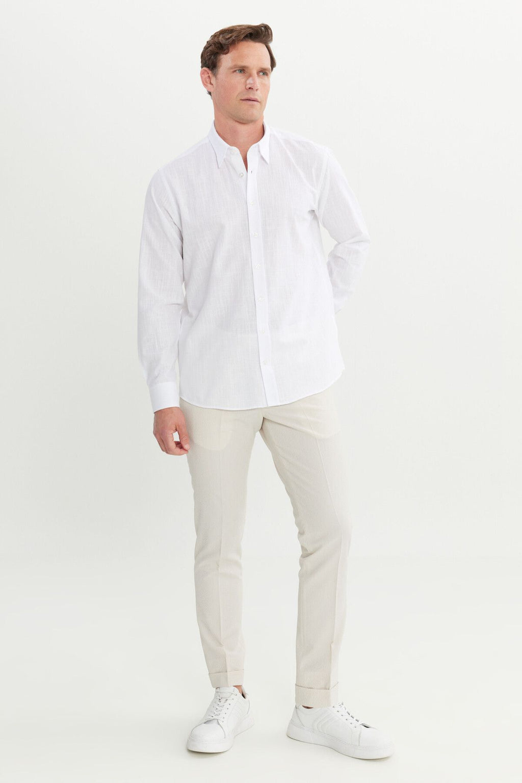 Men's White Comfort Fit comfortable cut hidden button collar 100 %cotton pennant shirt