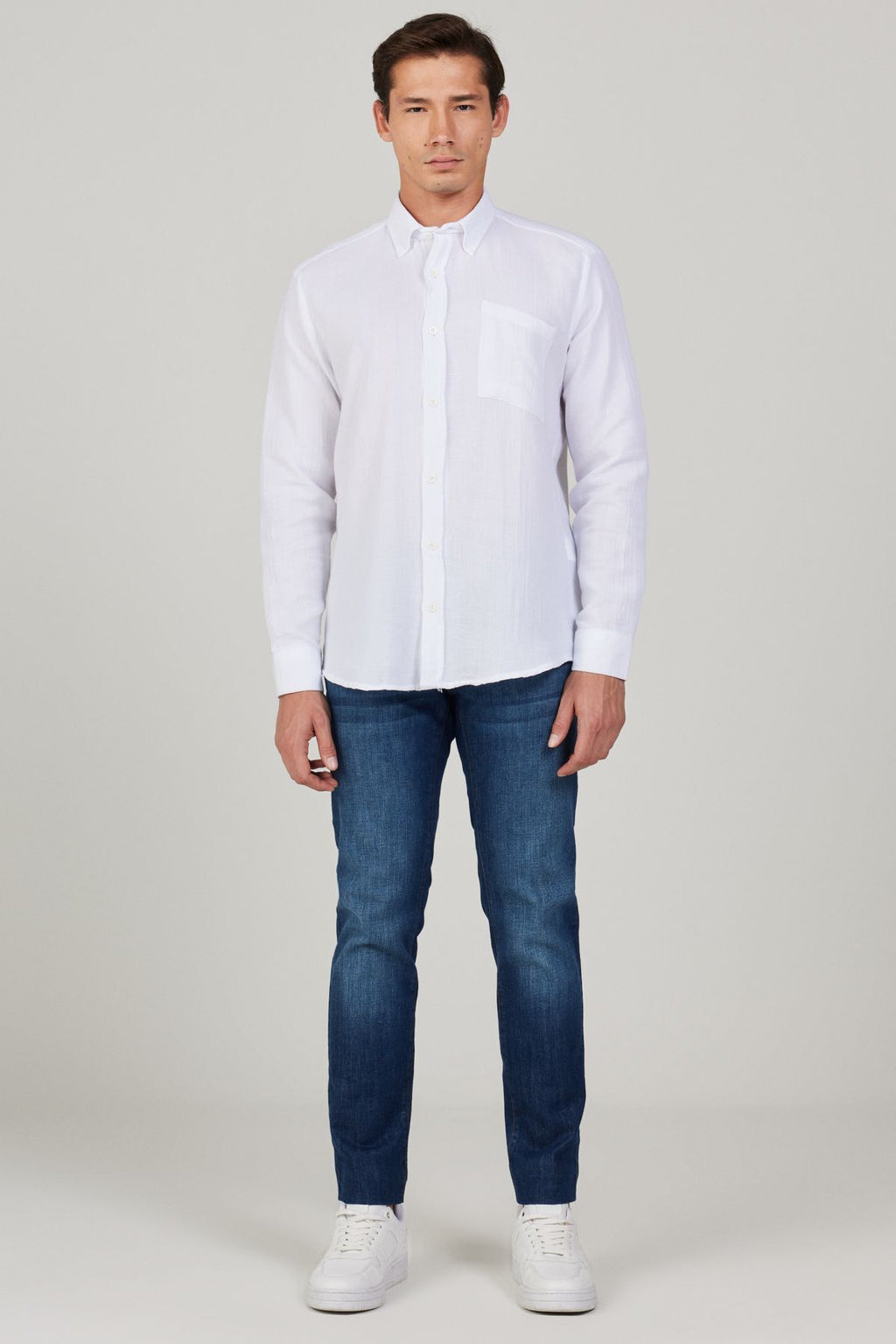 Men's White Comfort Fit Wide Classic Collar 100 %Cotton Muslin Shirt