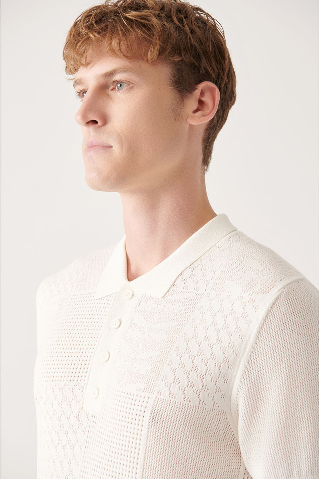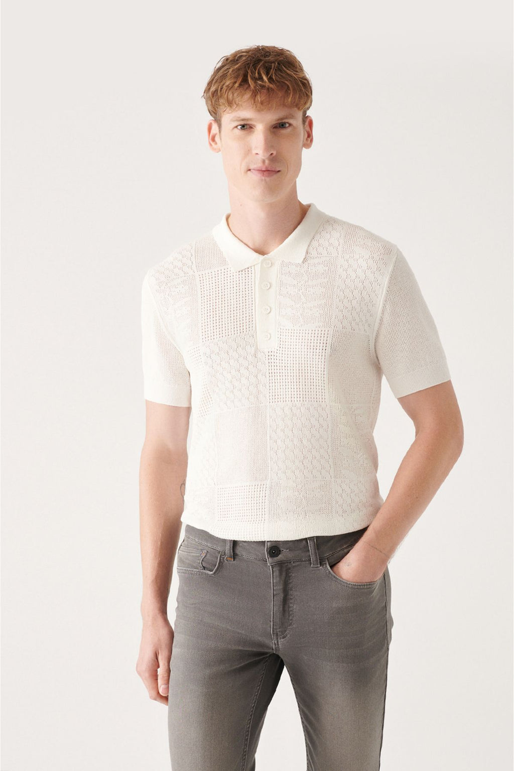 Men's White Cotton Output Polo Yaka Triko T-Shirt A31Y5031