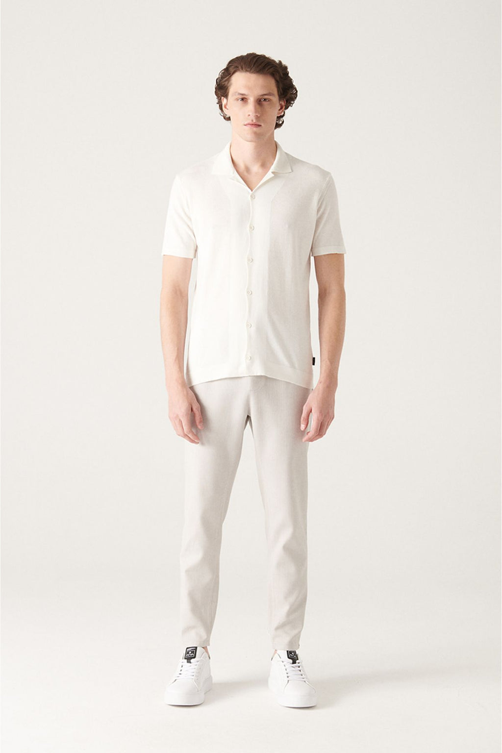 Men's White Cuban collar button knitwear T-shirt B005008