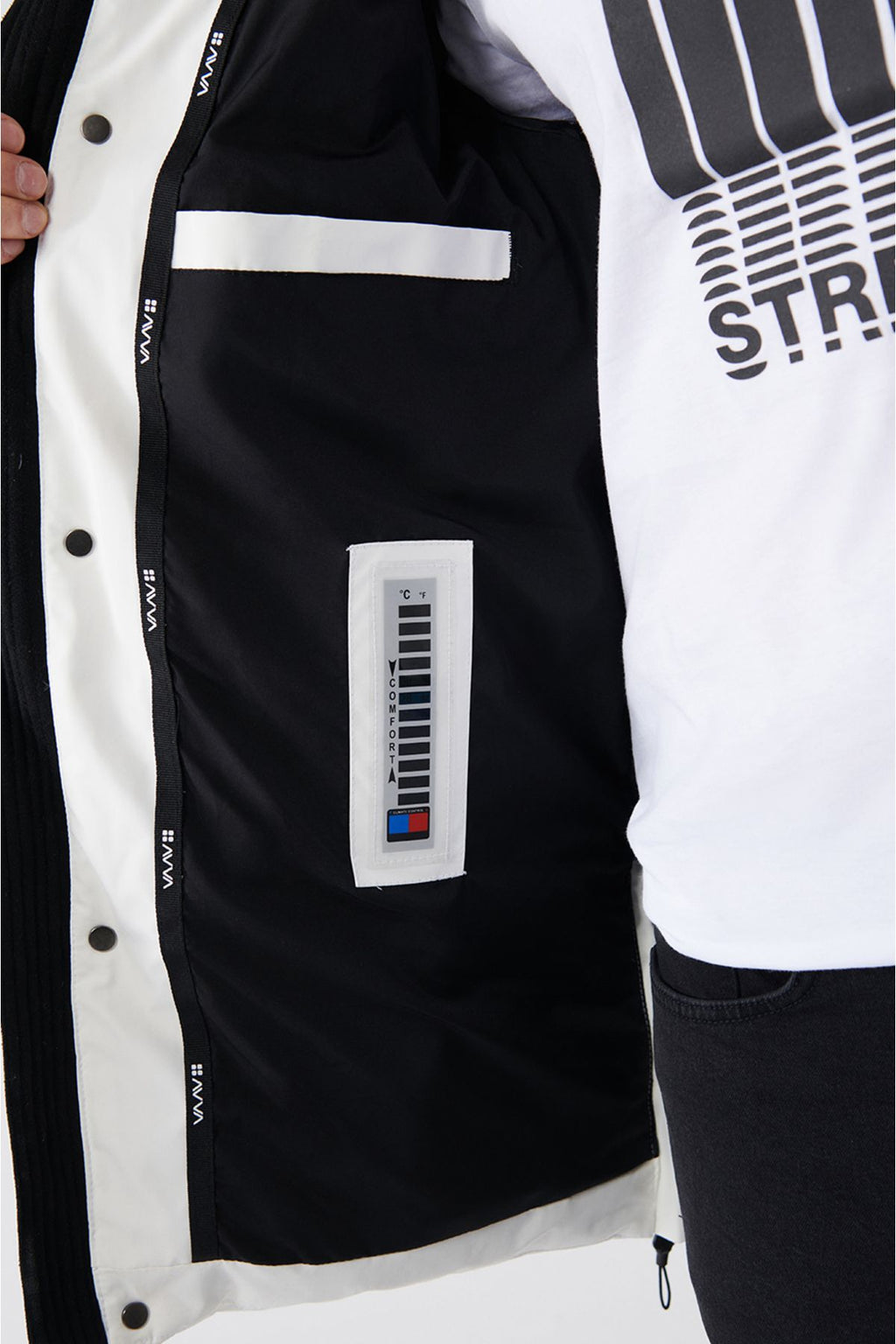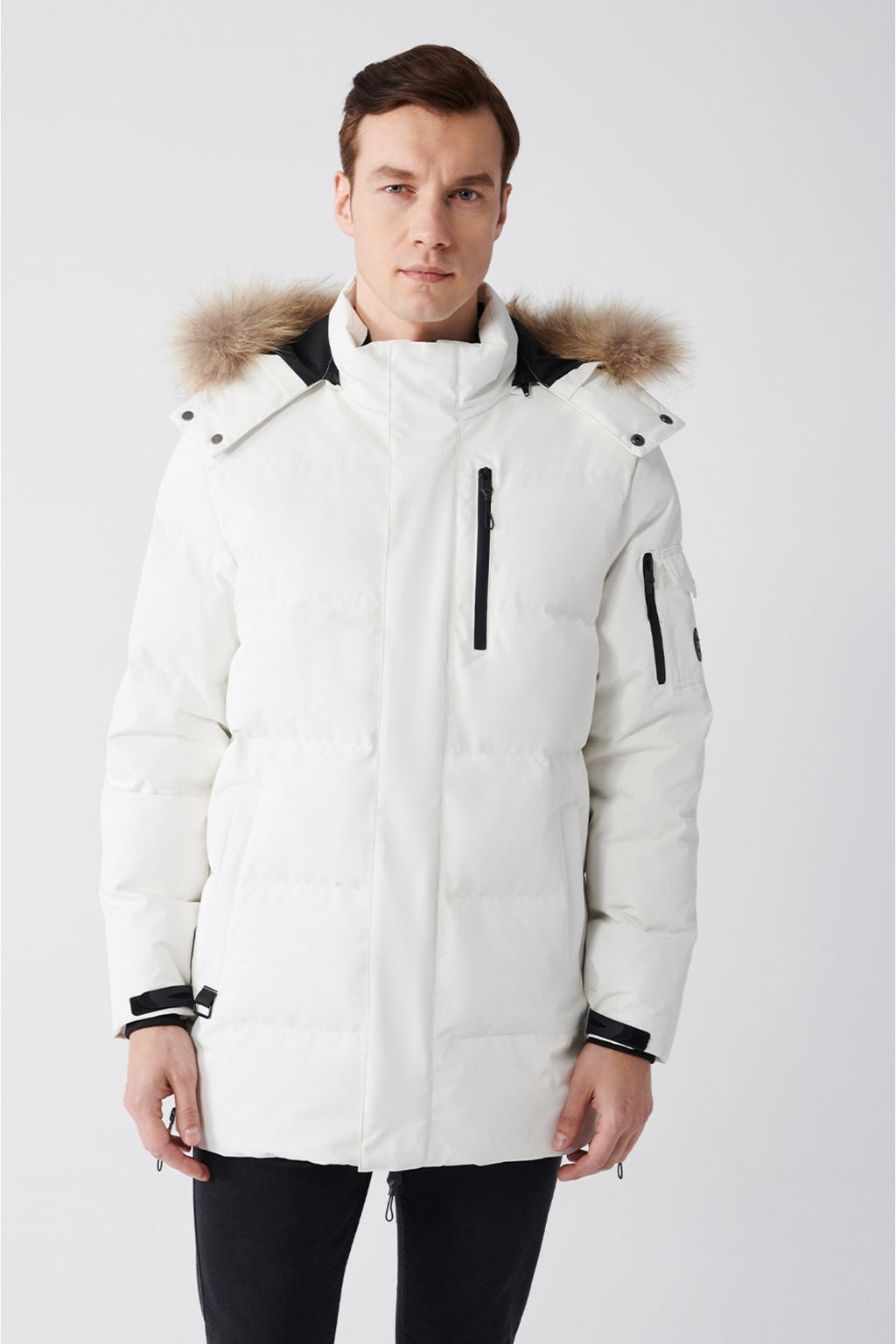 Men's white fur hooded thermal water repulsion goose feather swelling coat A22y6099