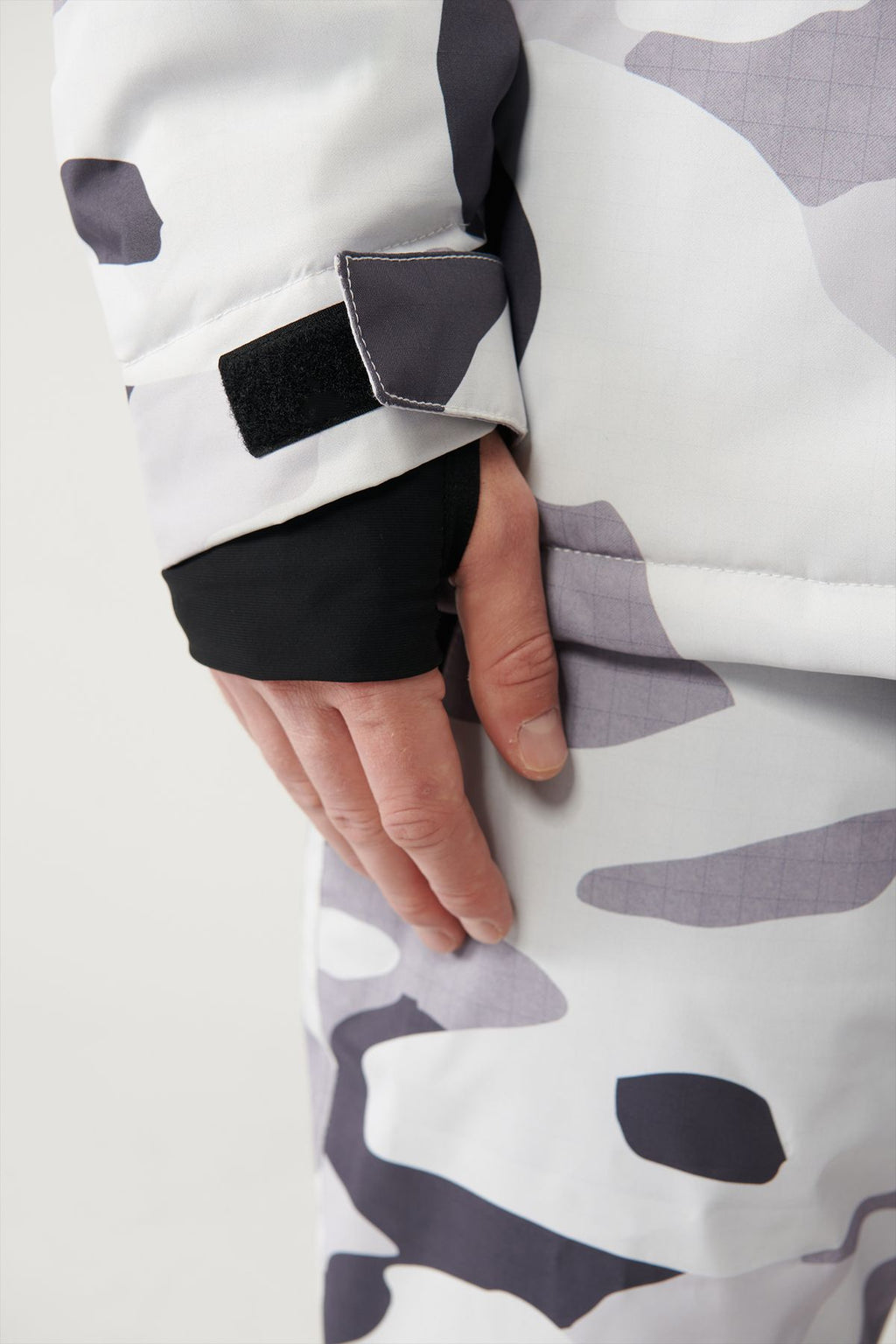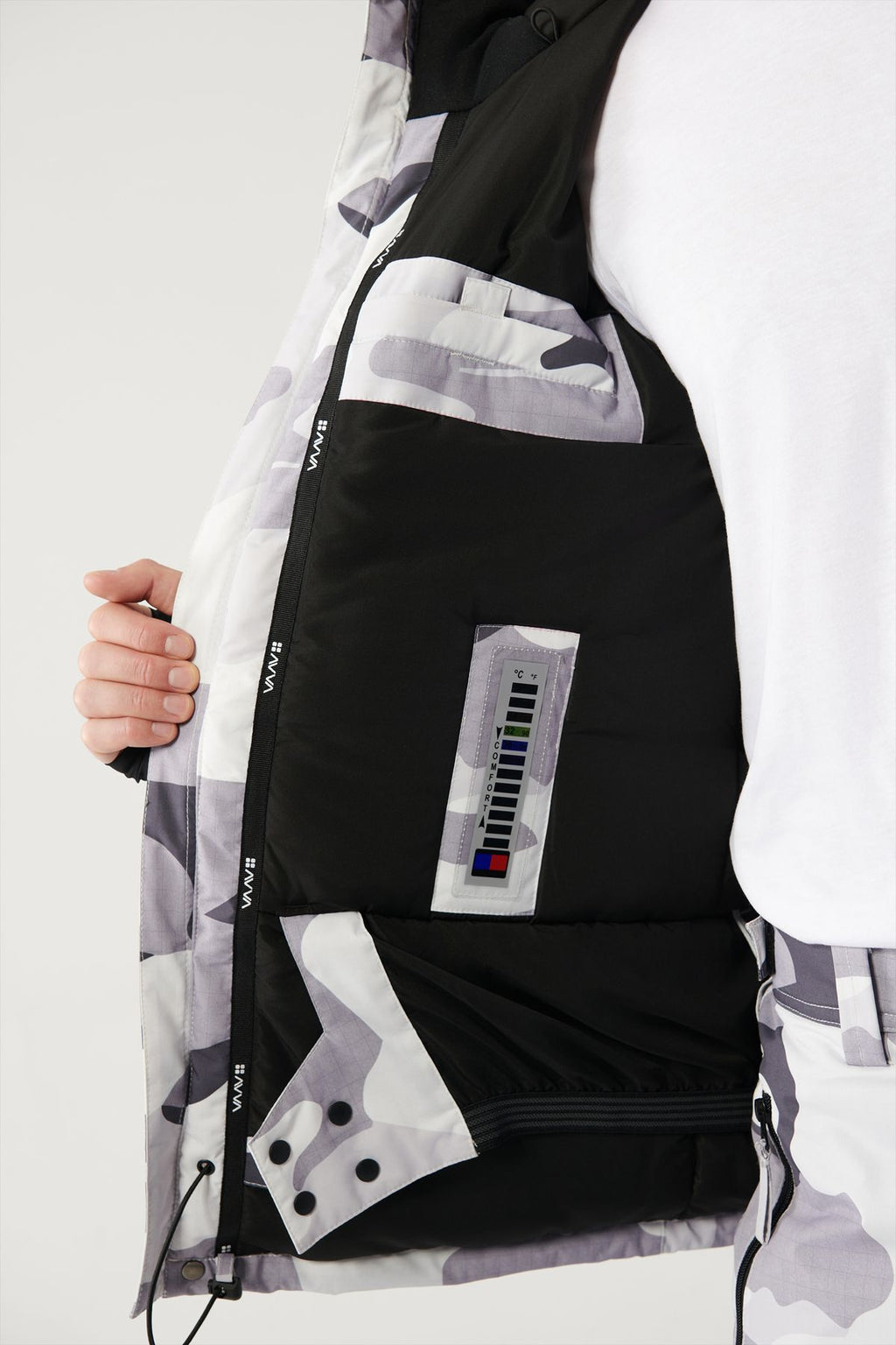 Men's White-Gray Hoped Patterned Water Protector Windproof SKI/Ski Coat A32Y6095