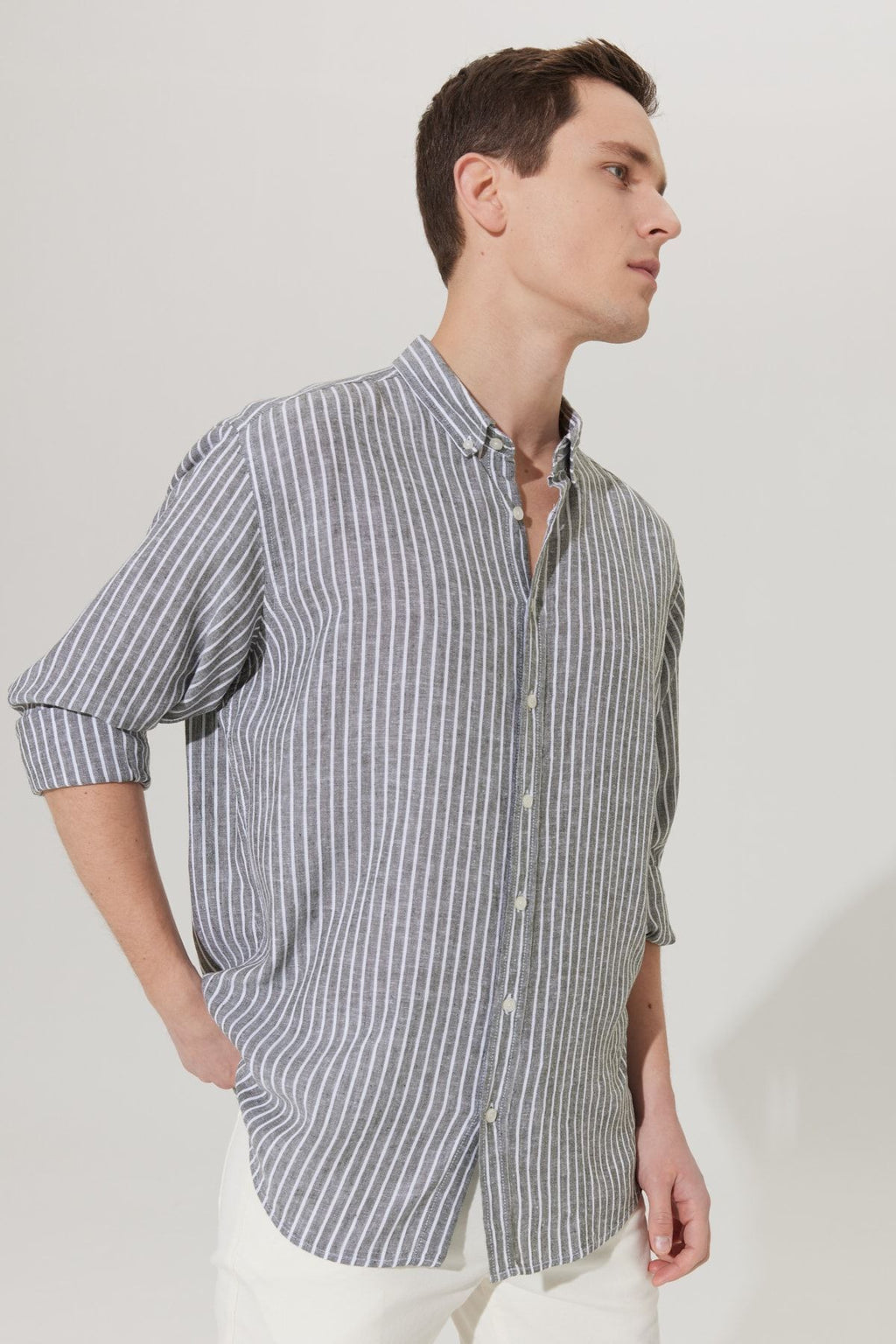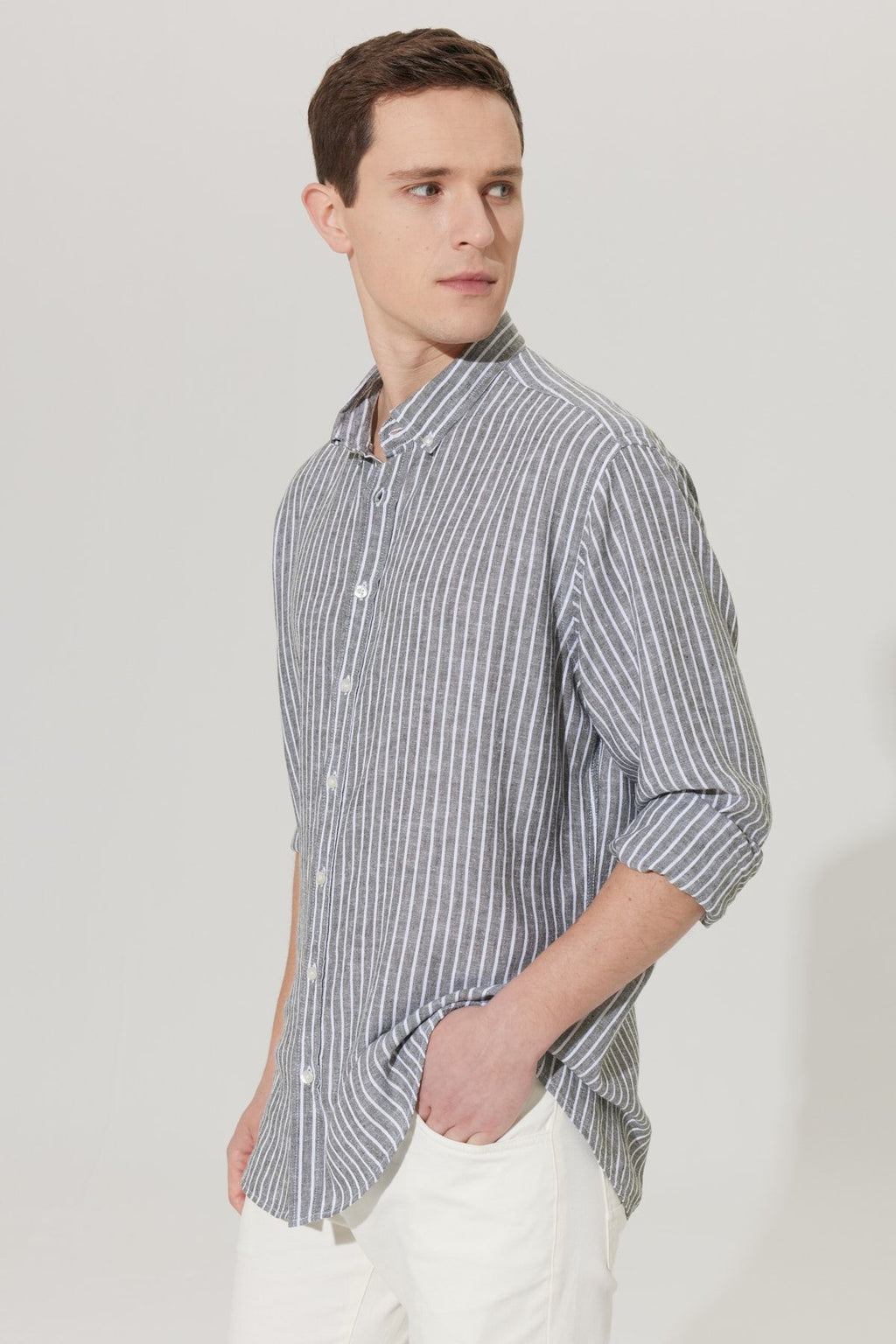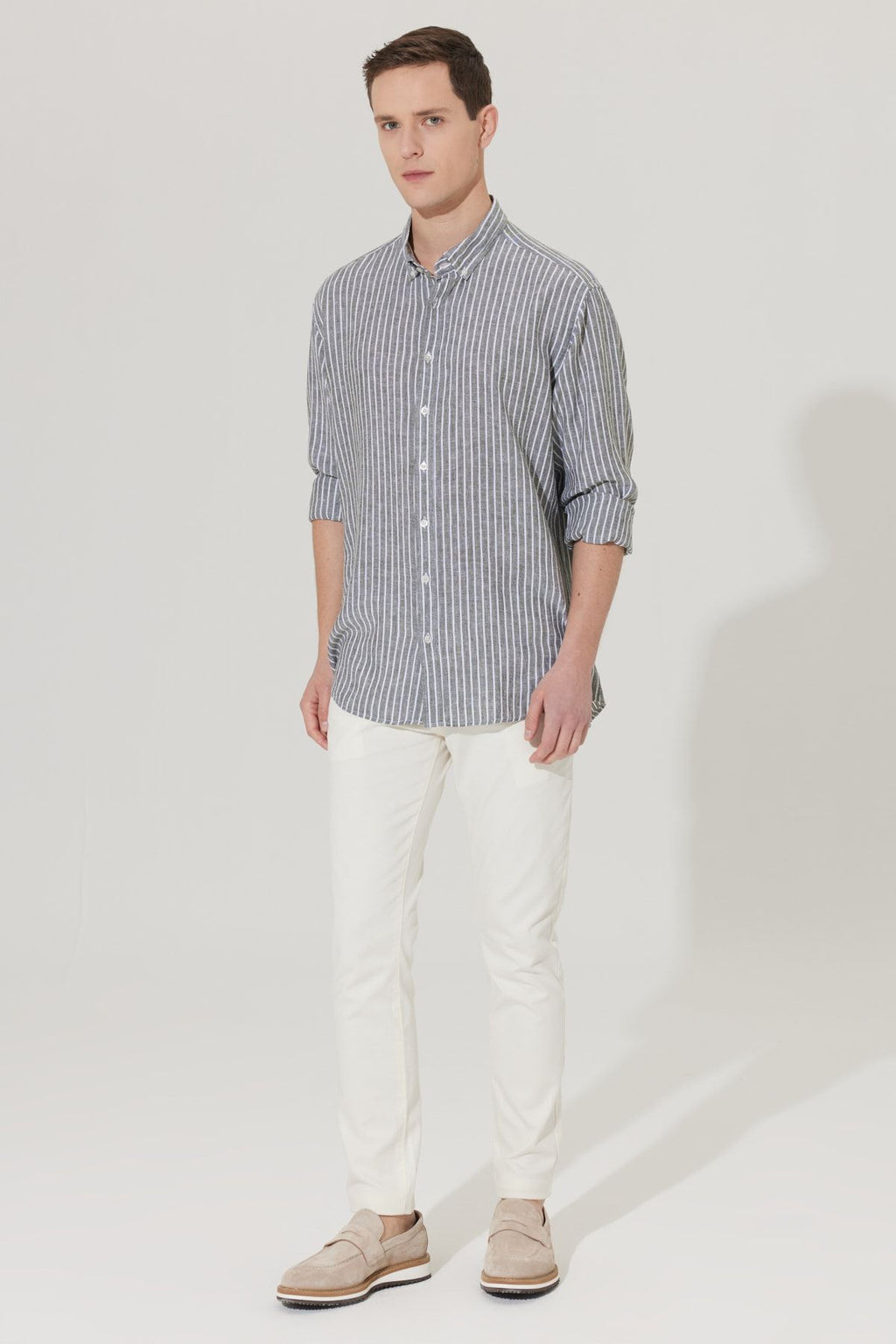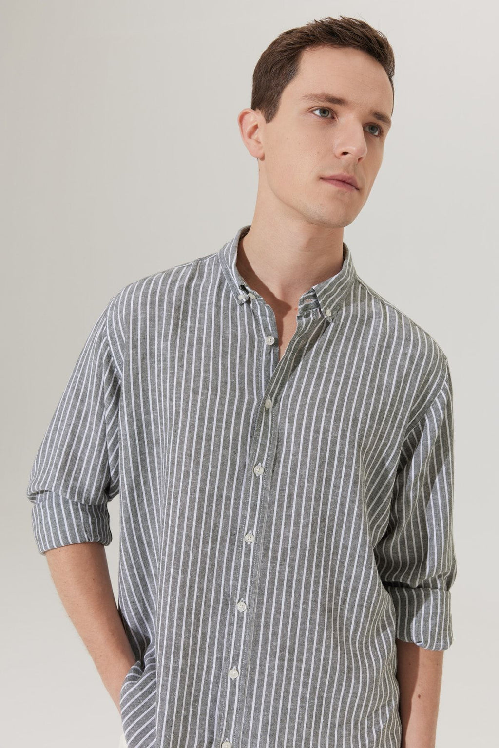 Men's White-Haki Linen Comfort Fit Casual Cutting Buttoned Neckline Shirt