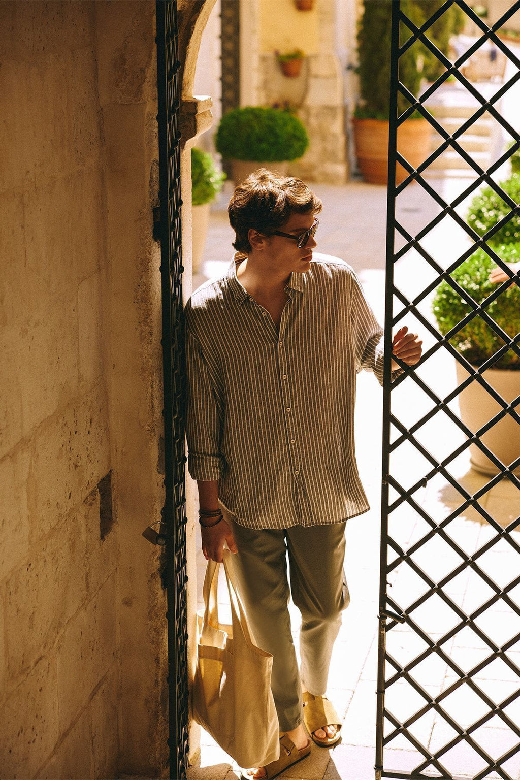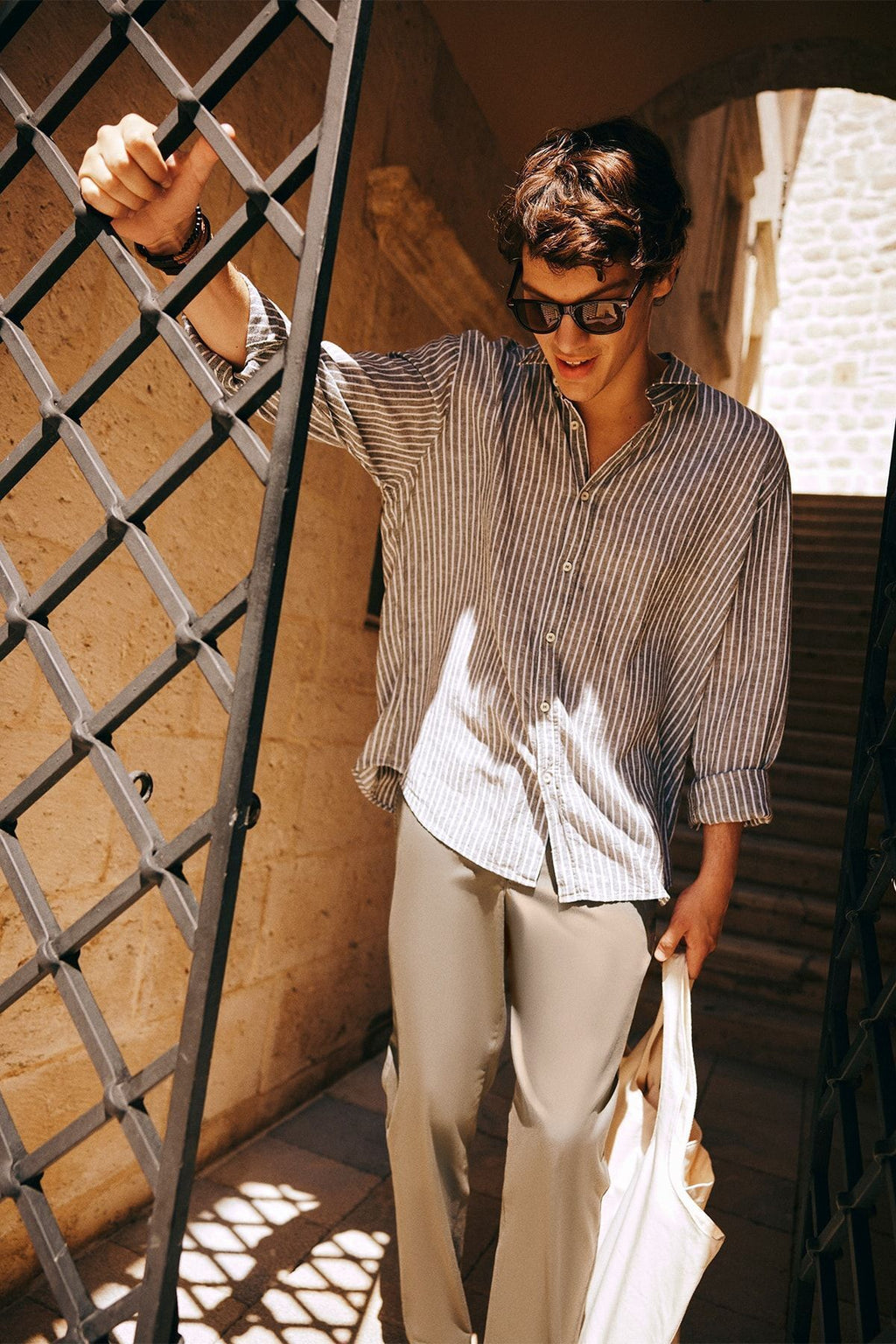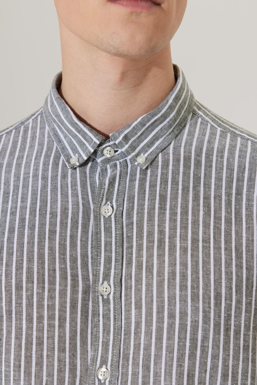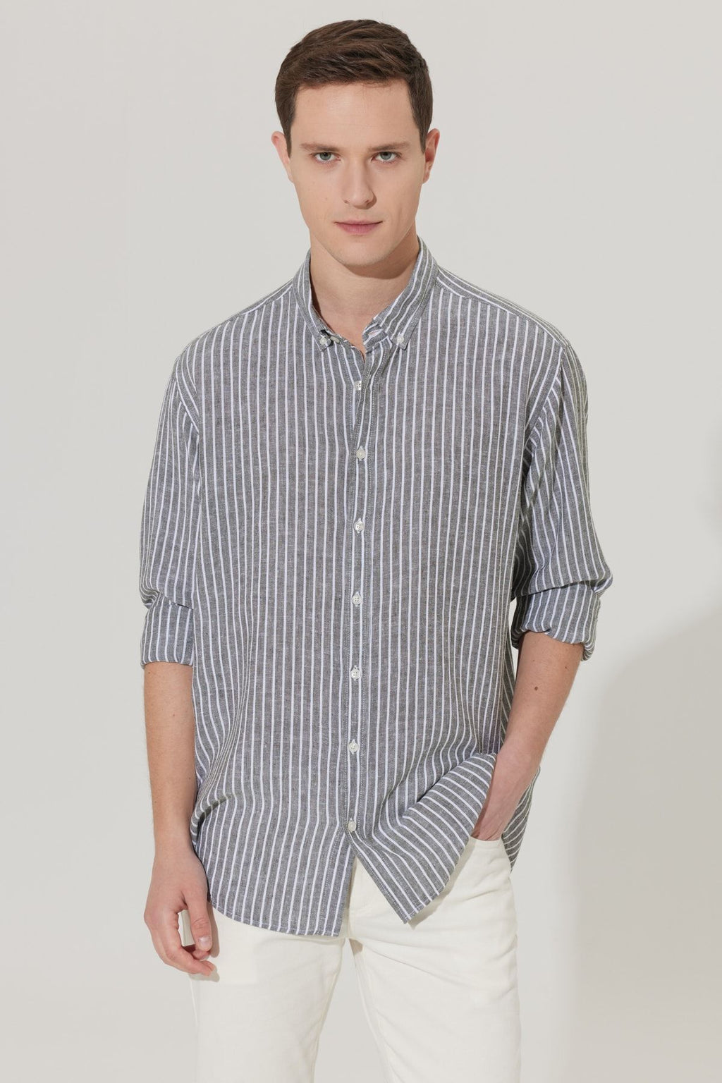 Men's White-Haki Linen Comfort Fit Casual Cutting Buttoned Neckline Shirt