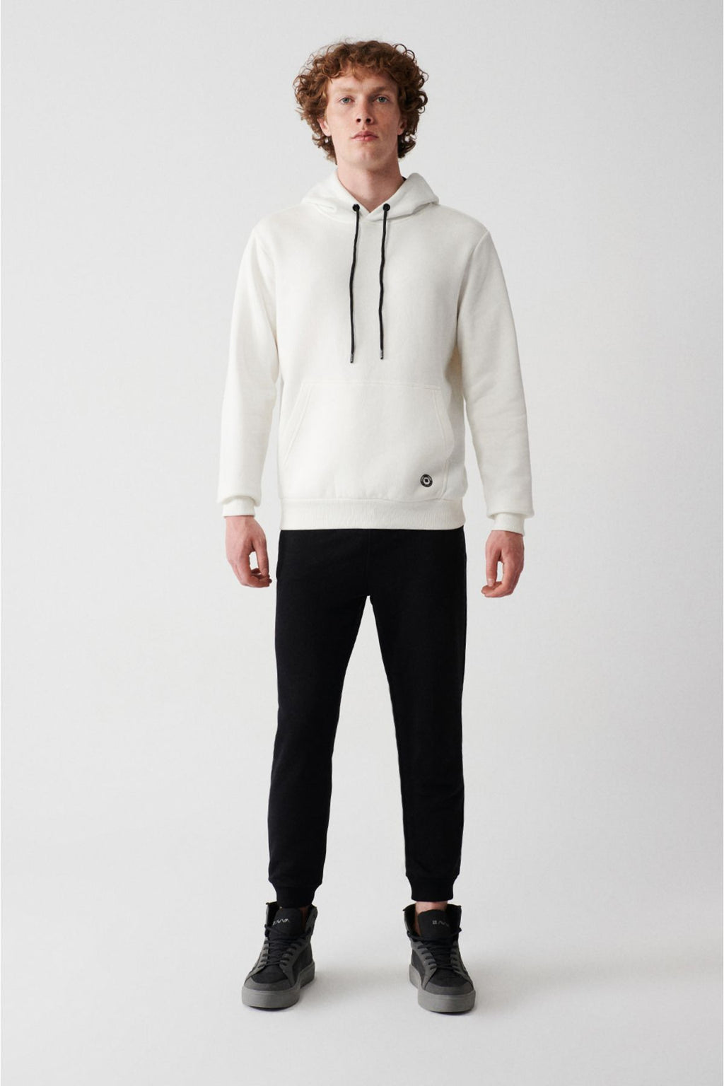 Men's white hooded 3 -squeezed cotton sweatshirt E001018