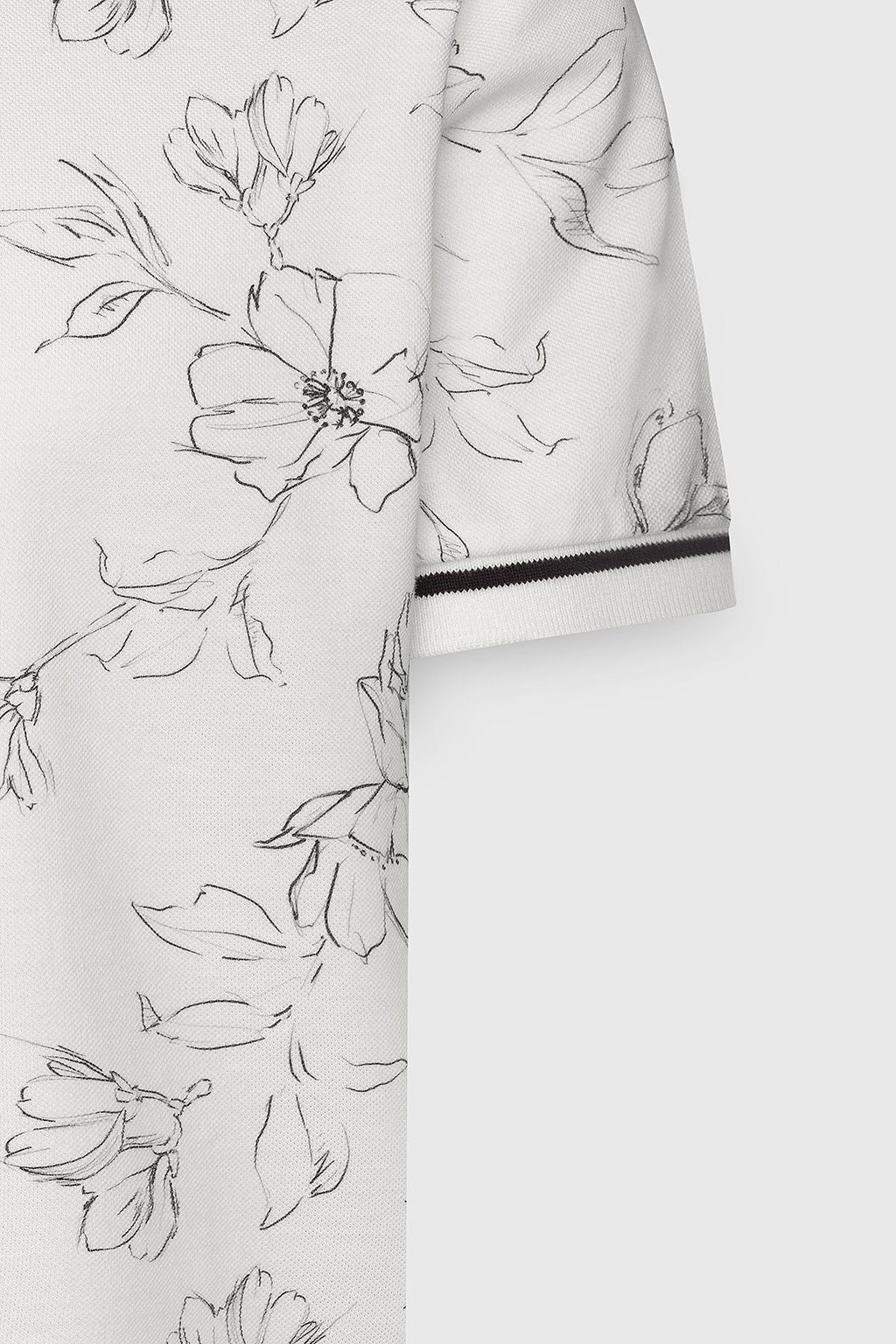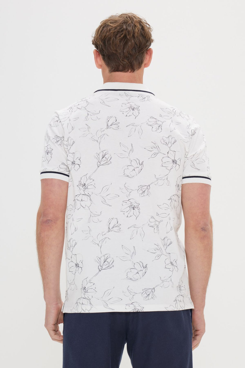 Men's white-lacivert slim fit narrow cut 100 %cotton flower printed polo collar t-shirt
