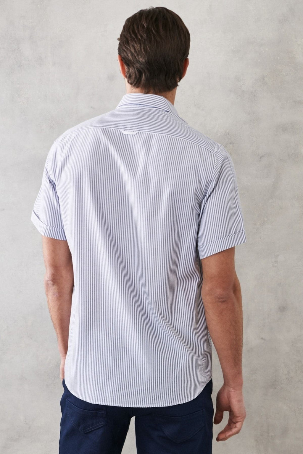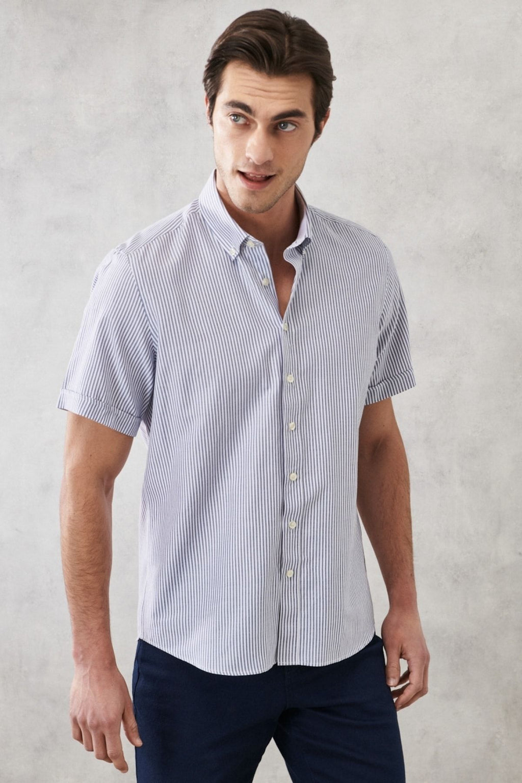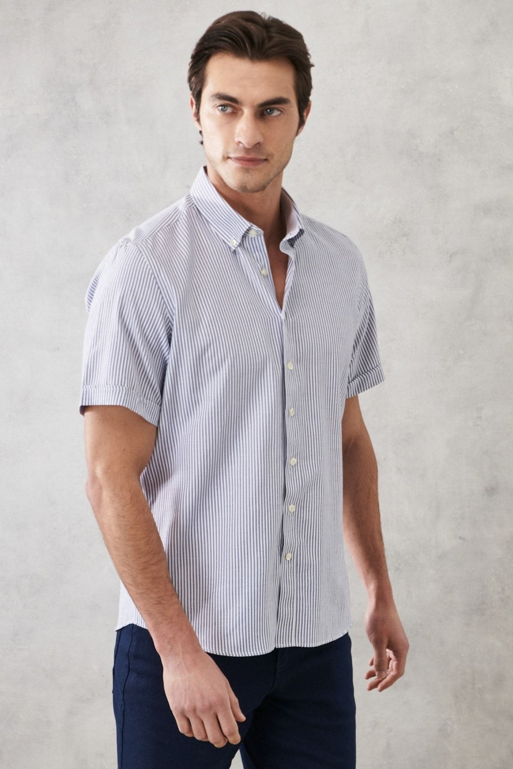 Men's white-lacivert slim fit narrow cut button buttoned shirt