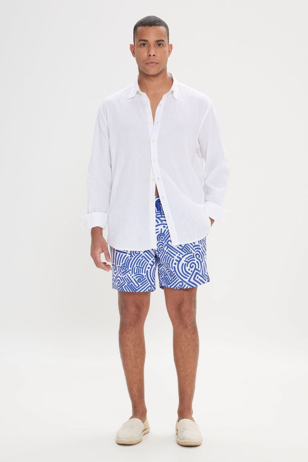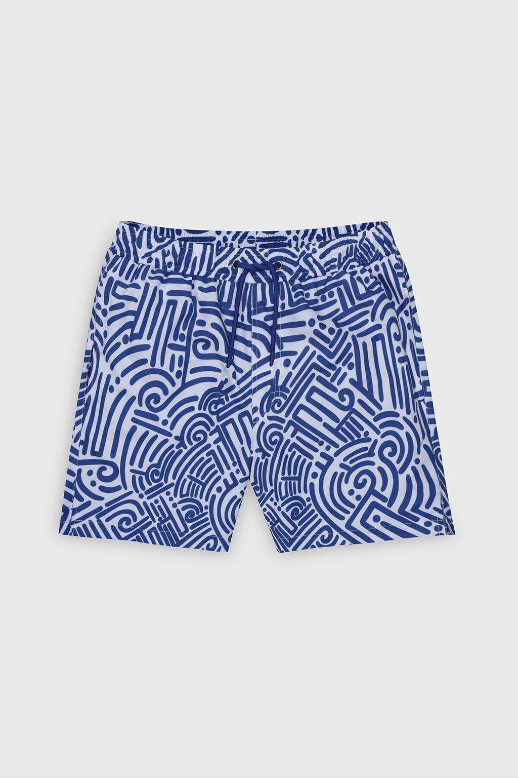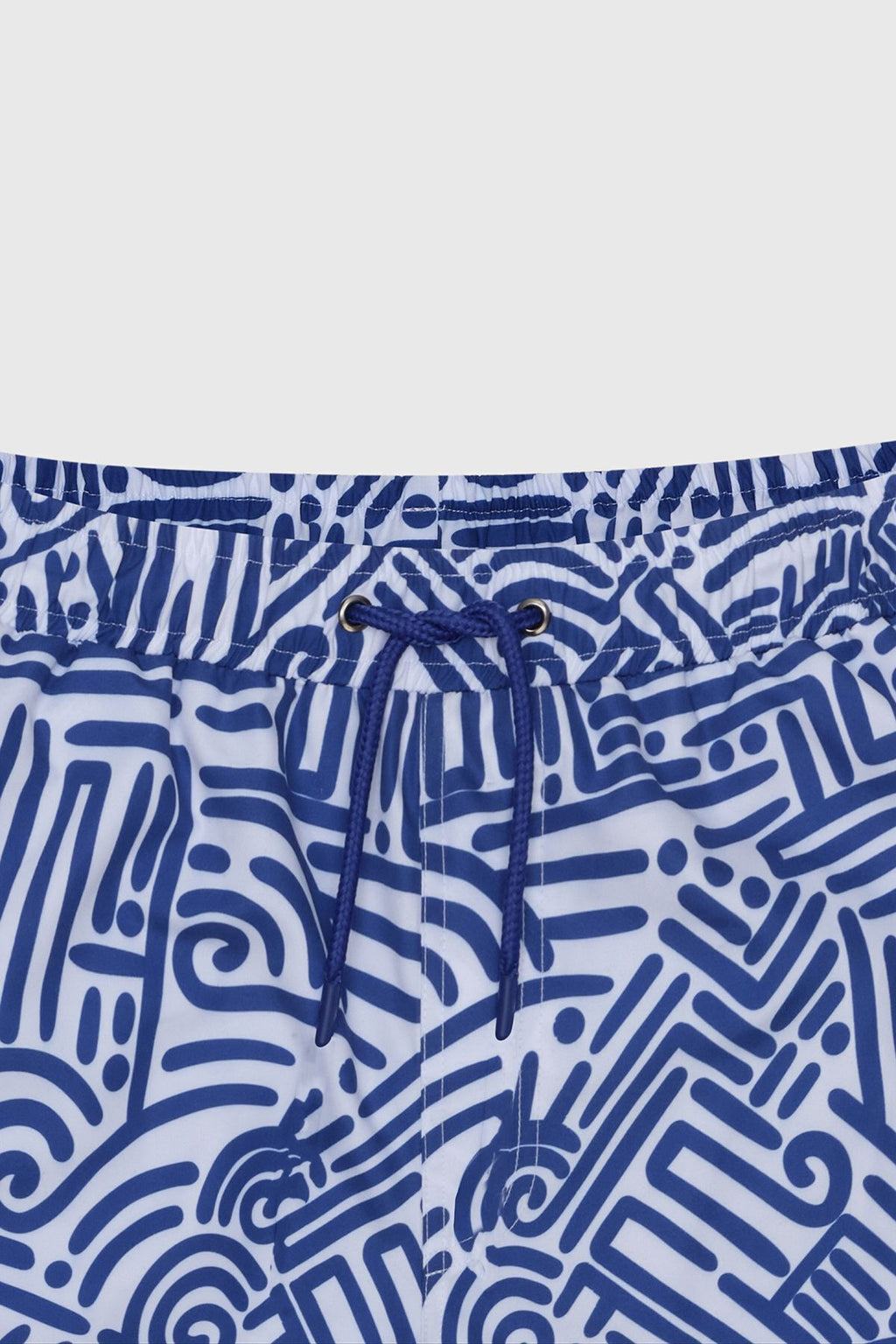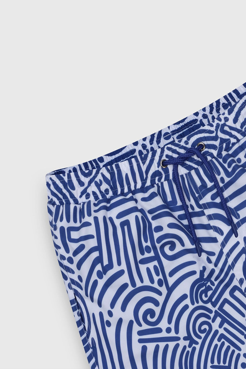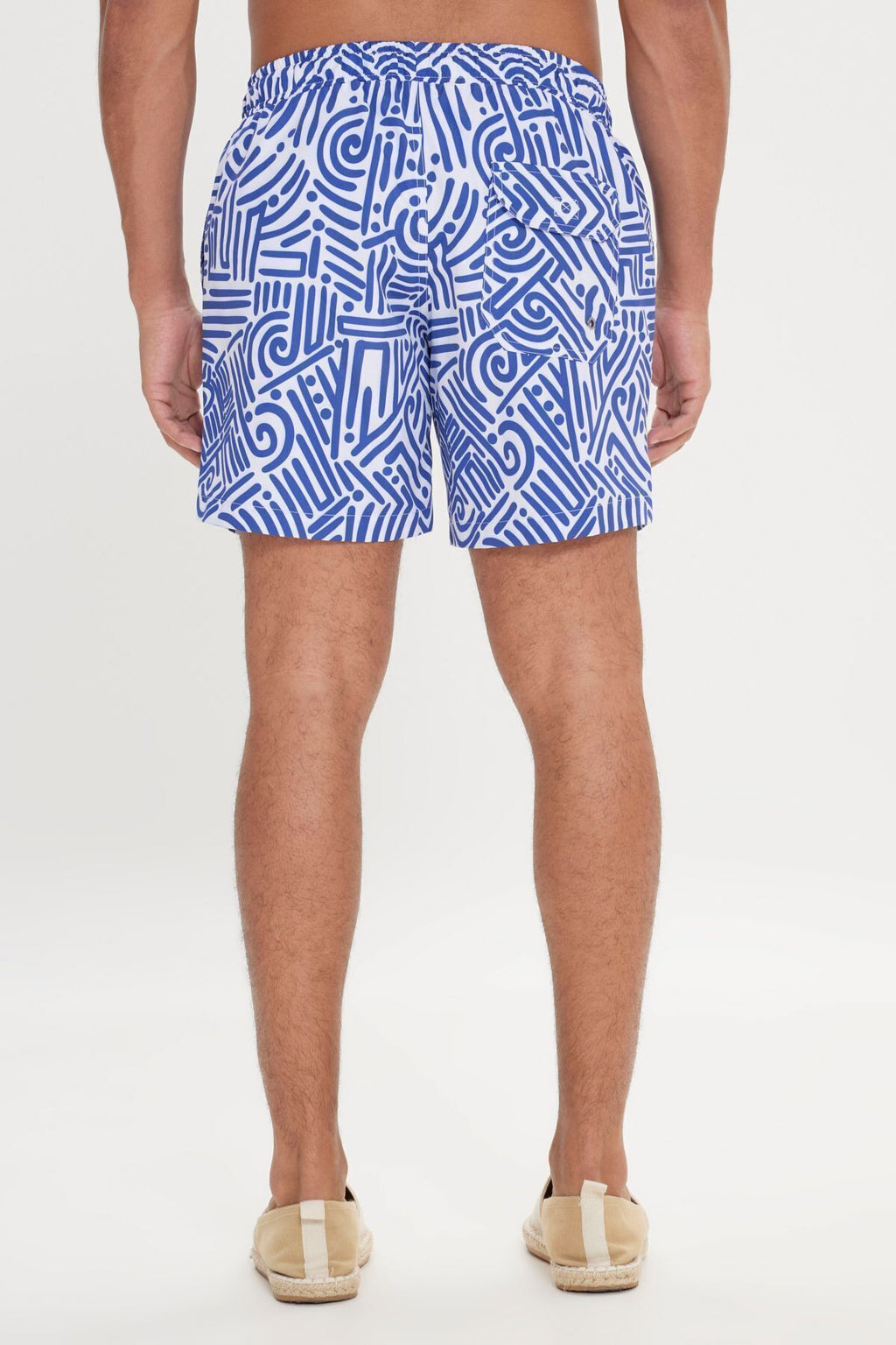 Men's White-Lacivert Standard Fit Normal Cutting Pocket Fast Drying Patterned Mayo Sea Short