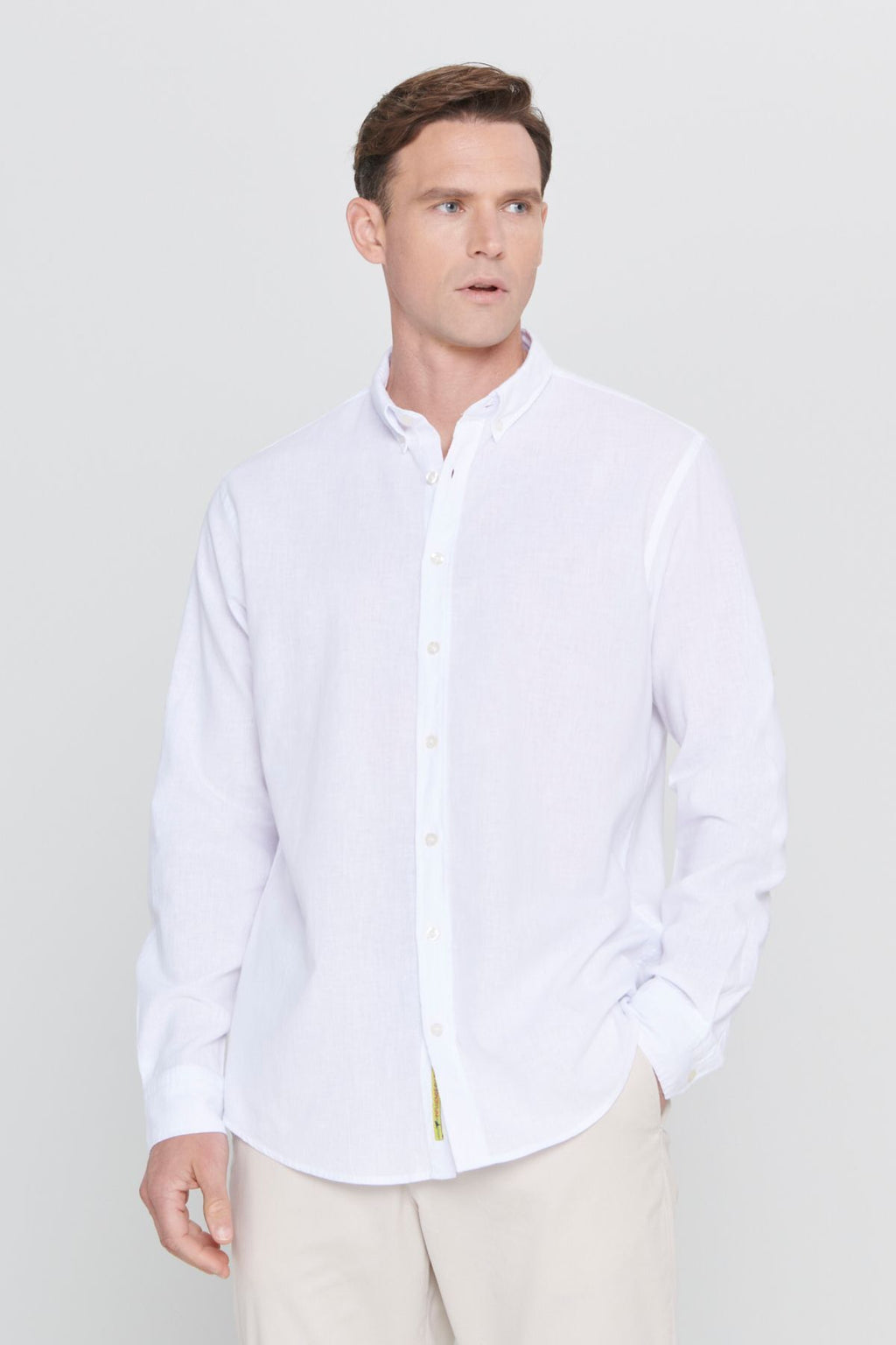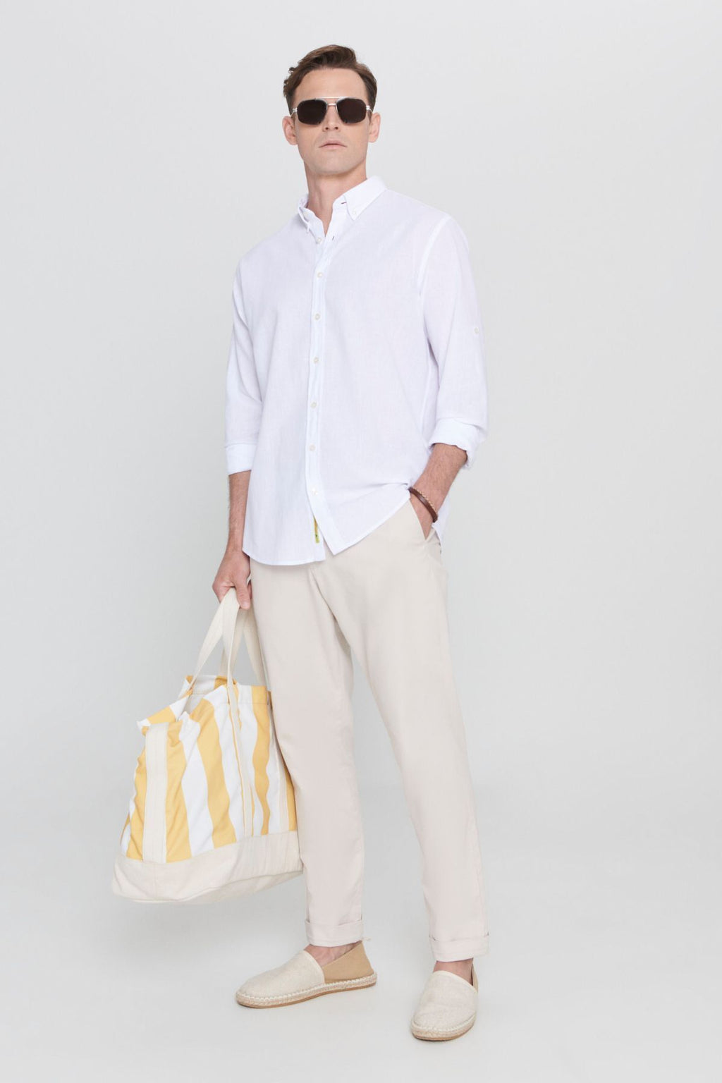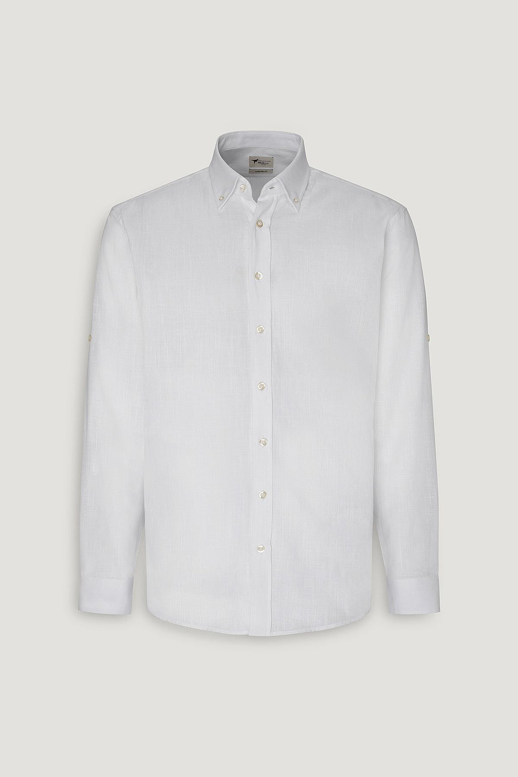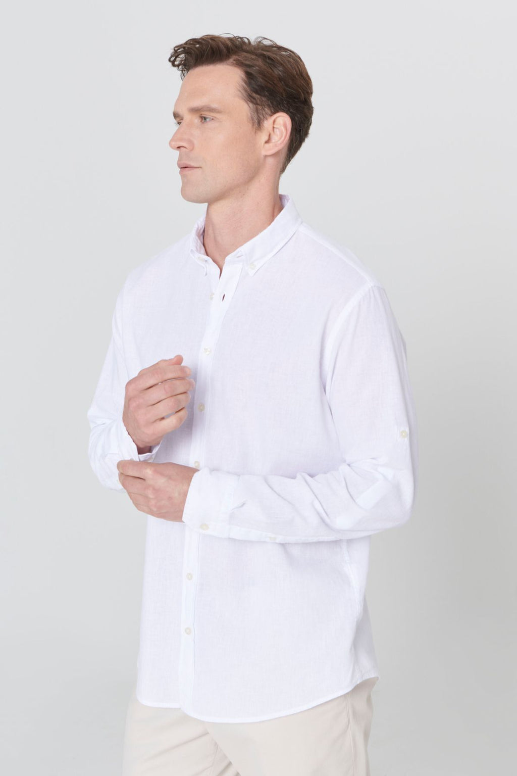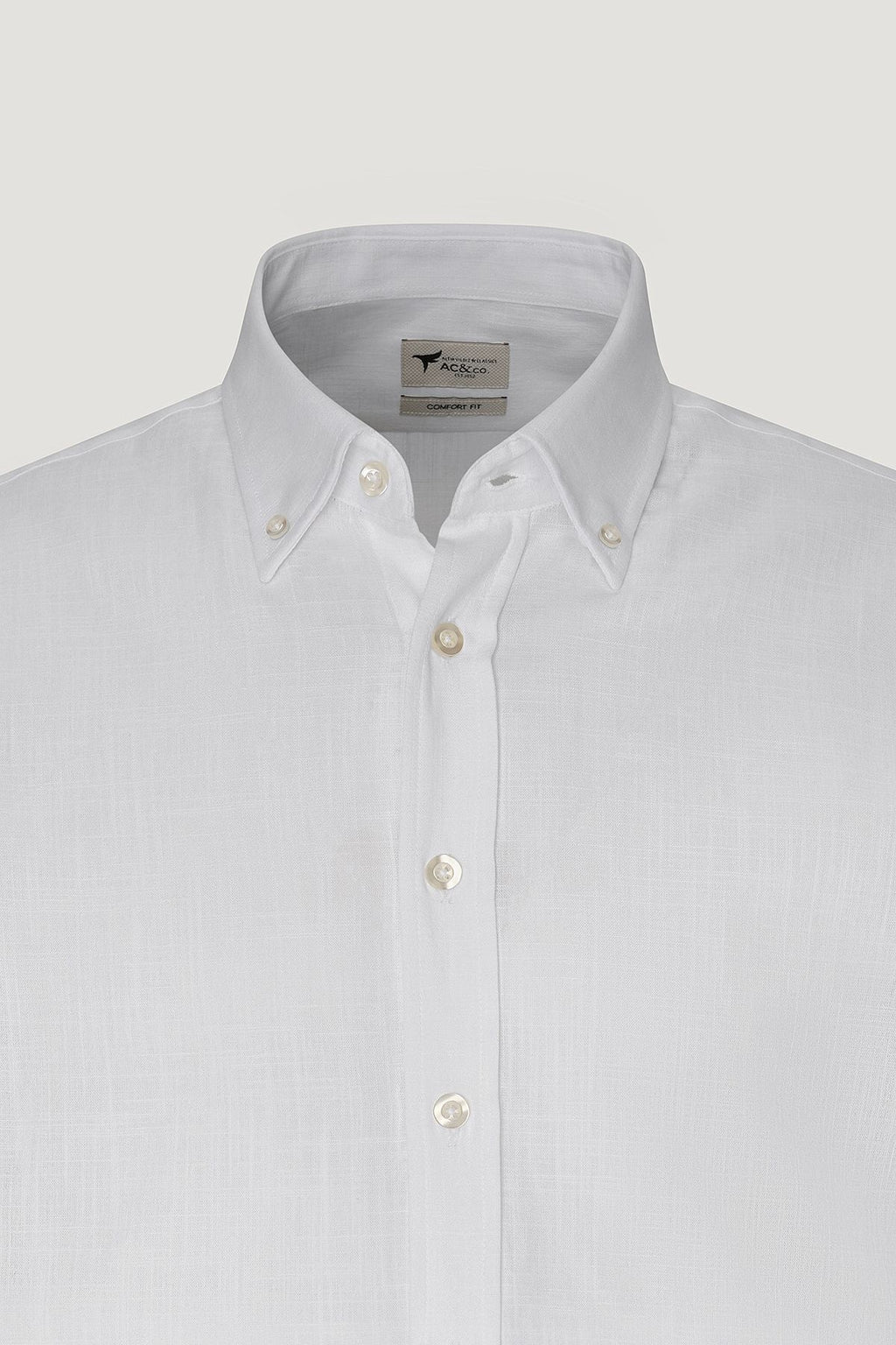 Men's white linen comfort fit comfortable cut buttoned collar casual shirt