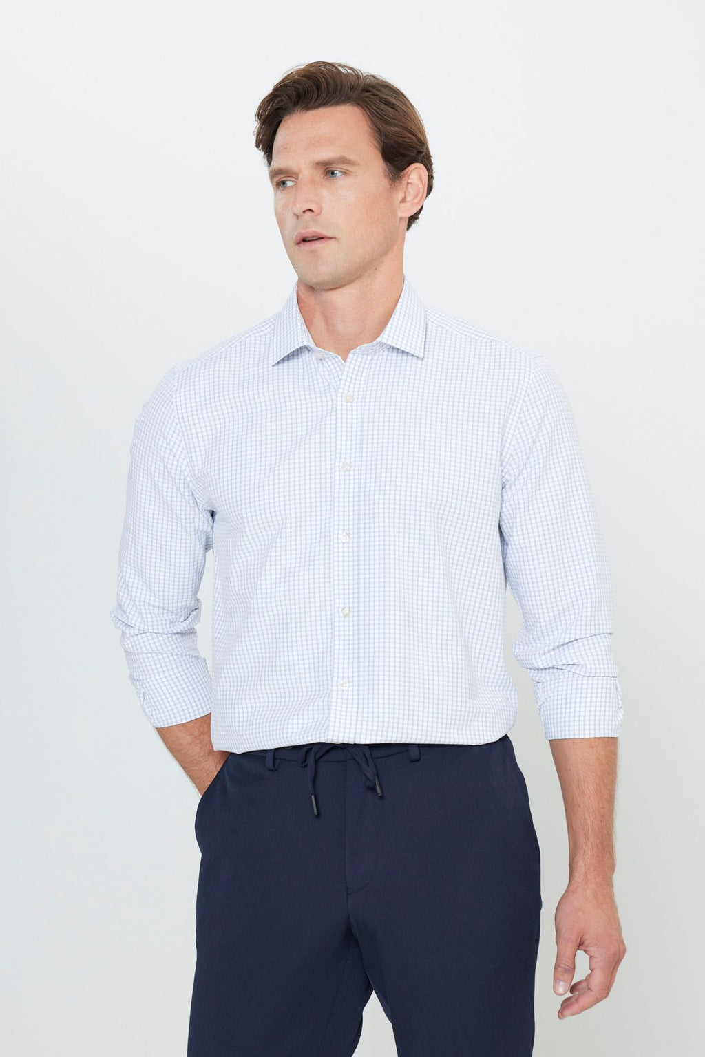 Men's White Mint Cotton Oxford Slim Fit Narrow Cutter Classic Collar Amestyle Shirt