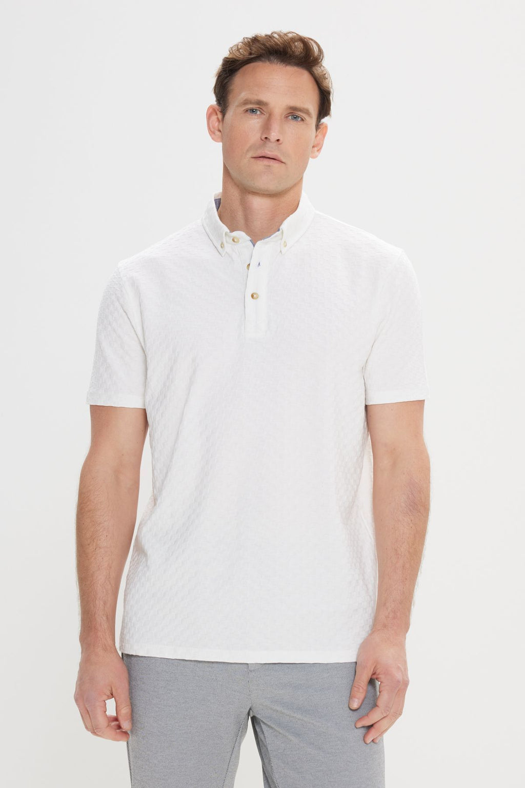 Men's white regular fit comfortable cut 100 %cotton jacquard polo collar t -shirt