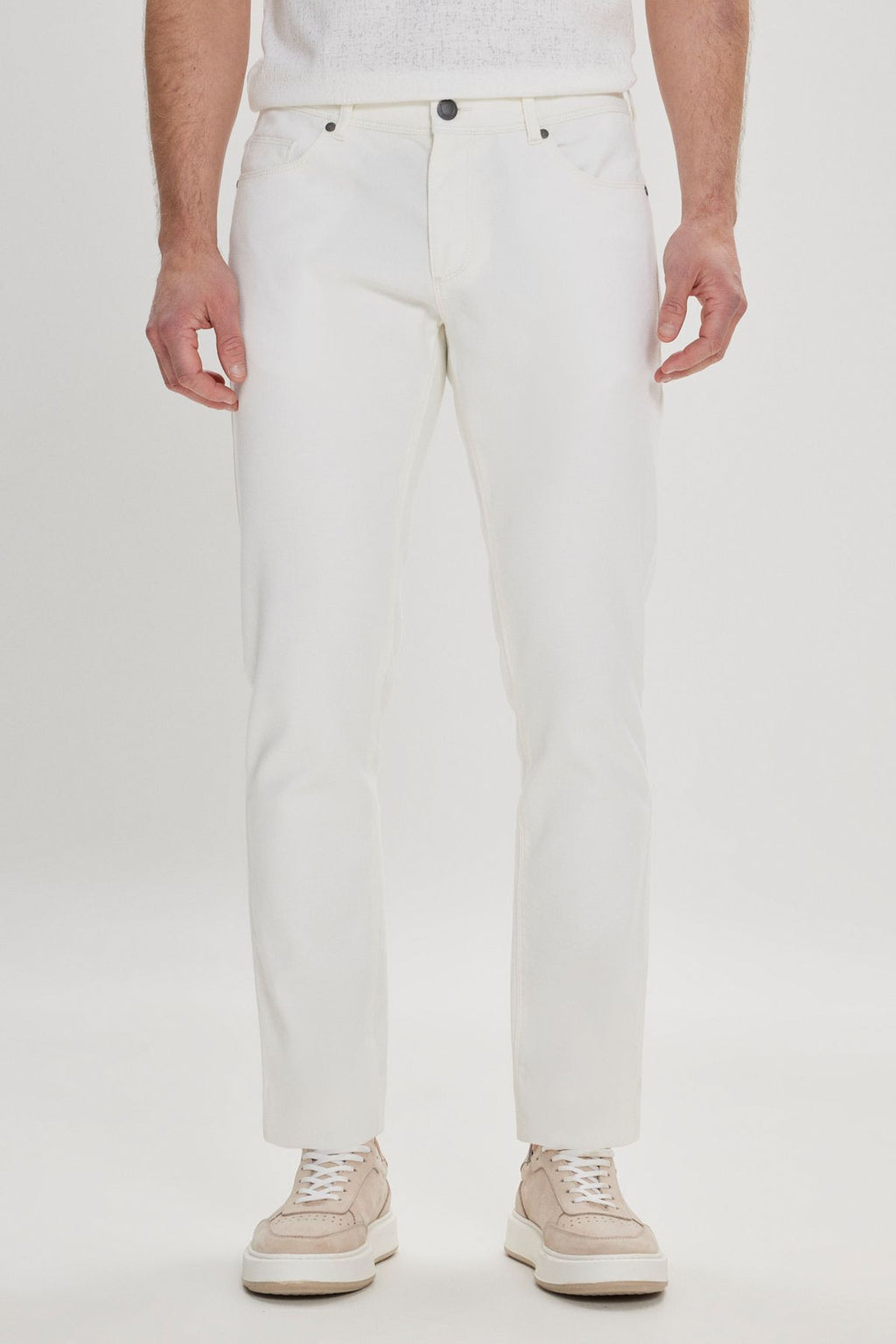 Men's white slim fit narrow cut 5 pocket Amelor Flexible Pants