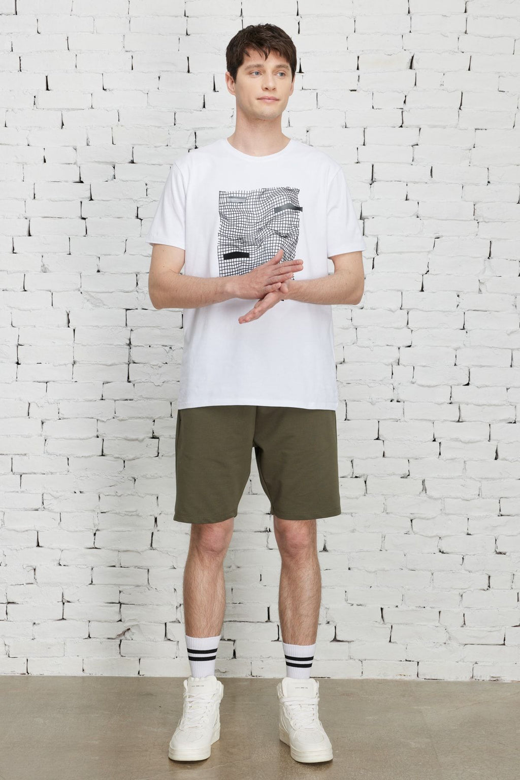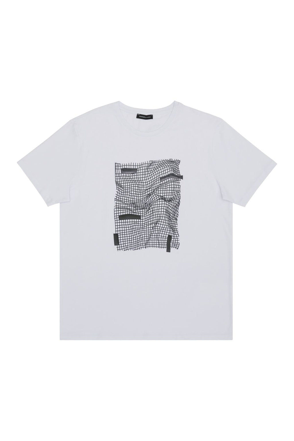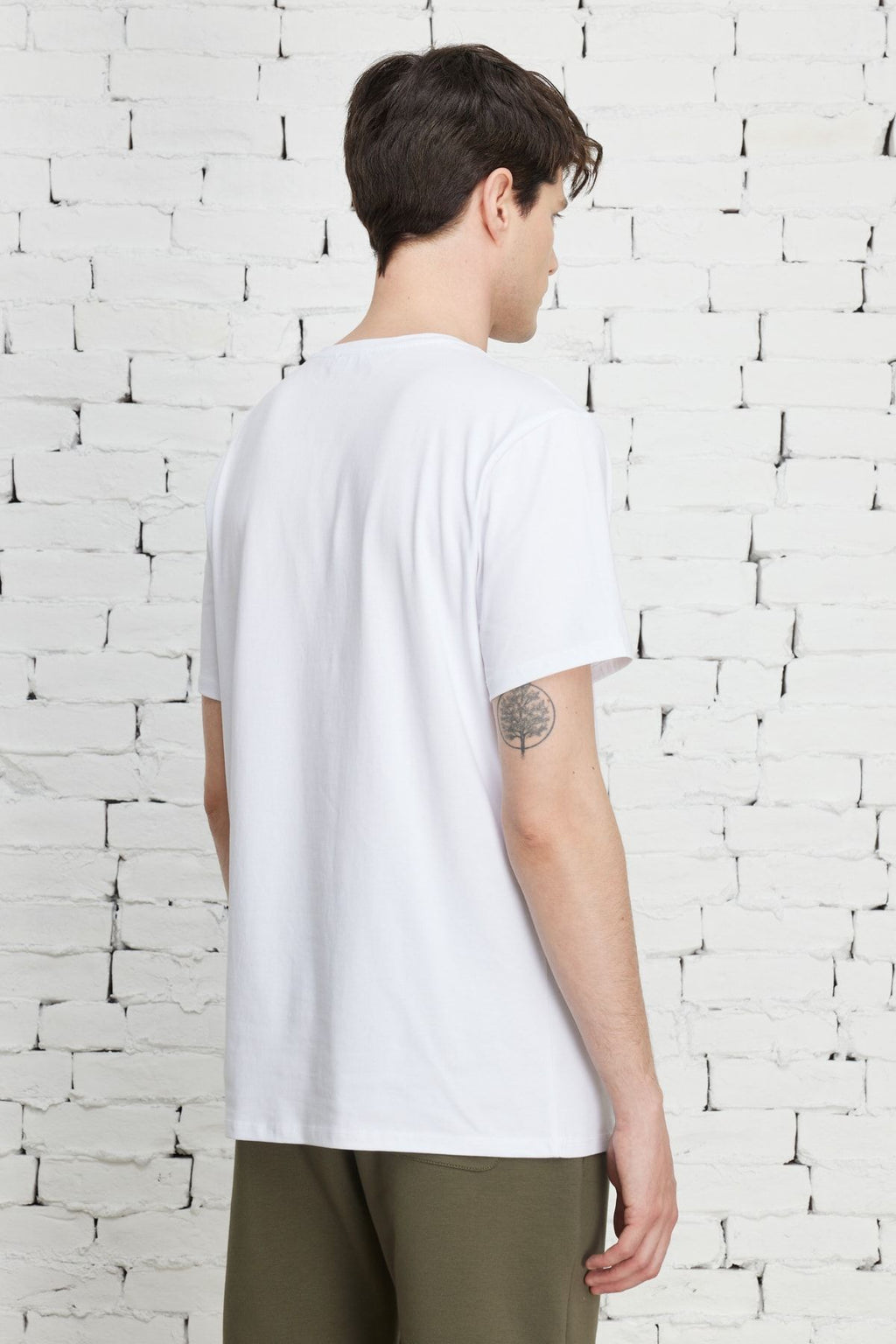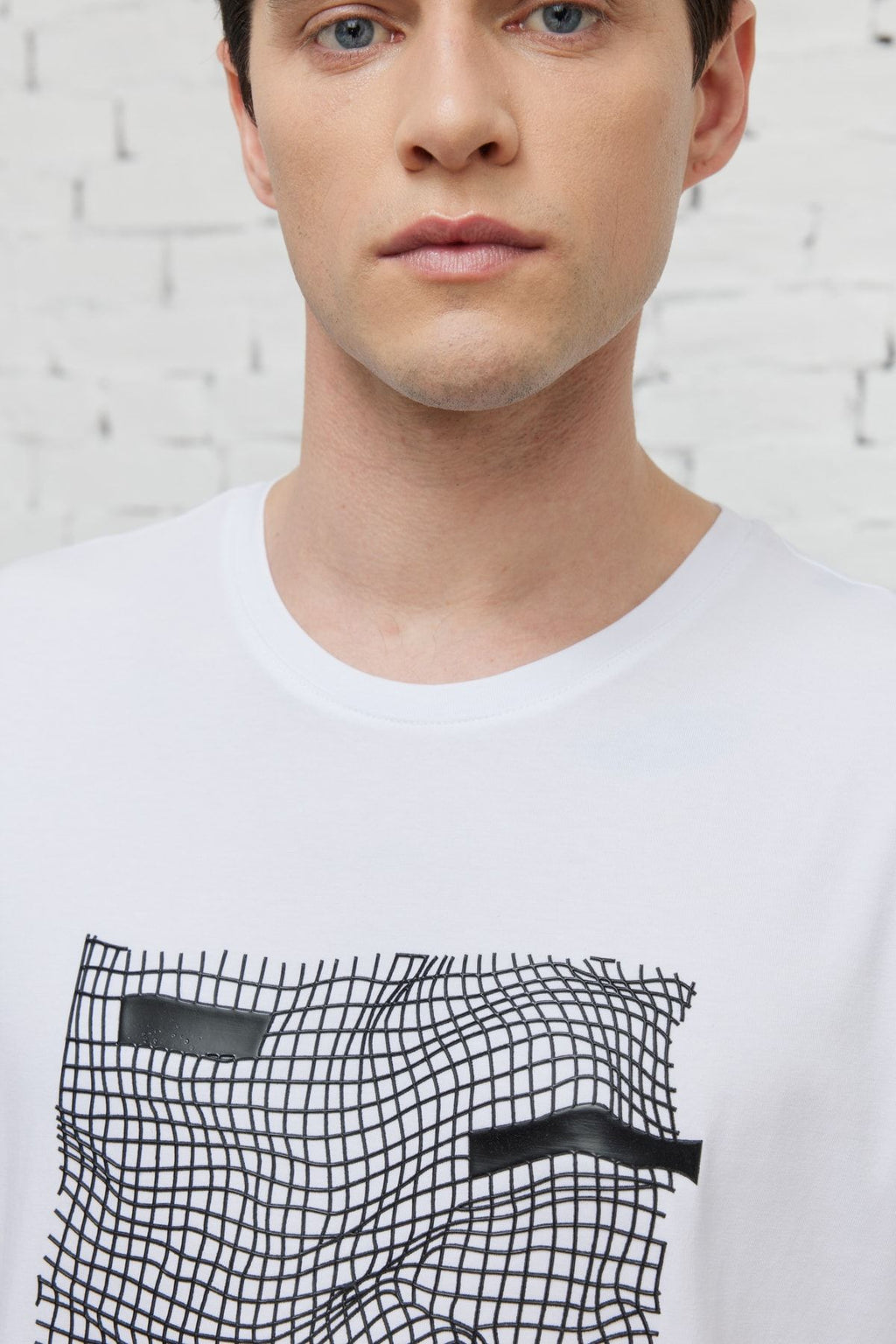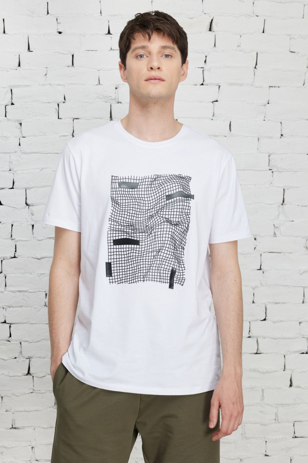 Men's white slim fit narrow cut bike bike collar cotton printed t -shirt