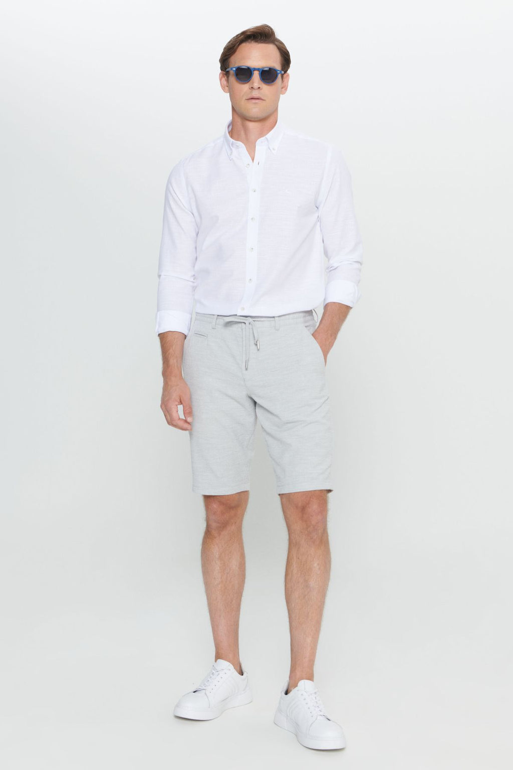 Men's white slim fit narrow cut button button with collar striped pennant shirt