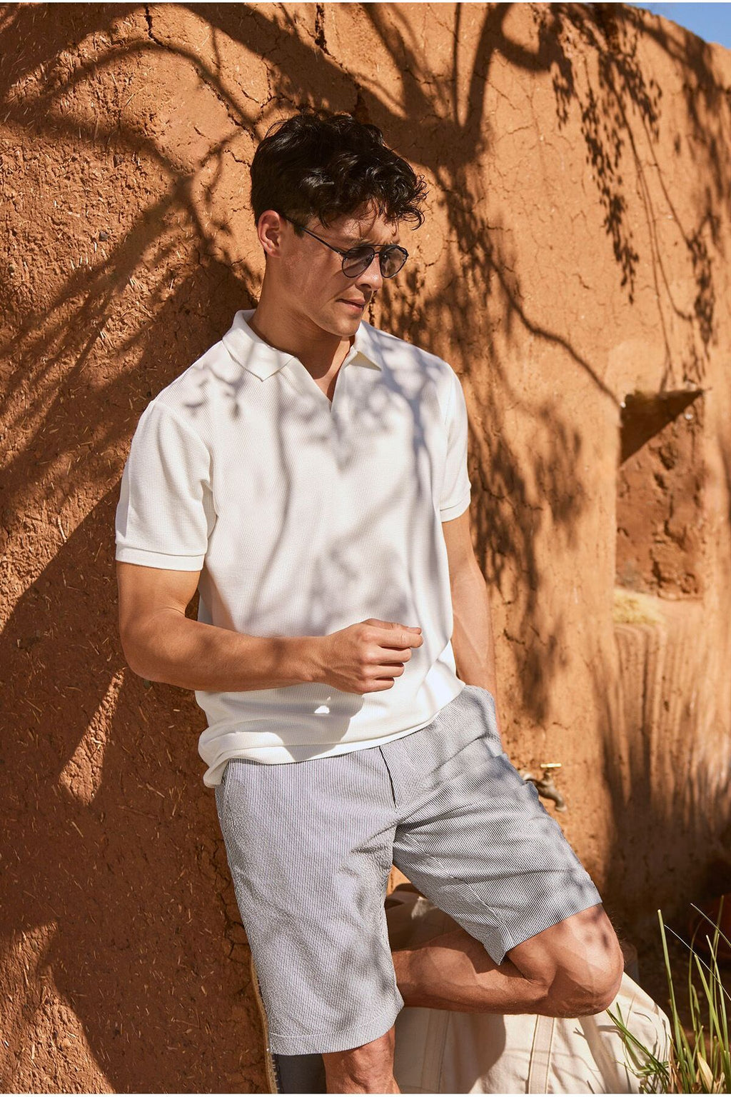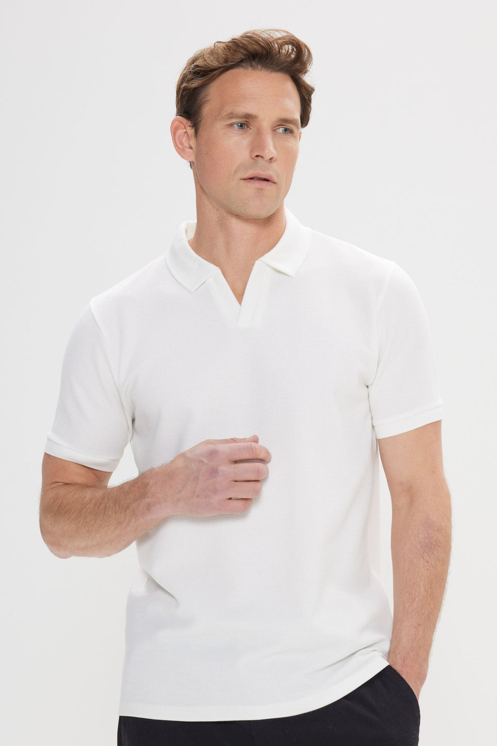 Men's white slim fit narrow cut Polo Yaka Amelor T -shirt