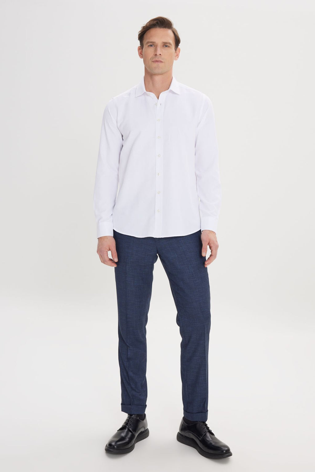 Men's White Slim Slim Fit Narrow Cotton Classic Collar Amelor Shirt with Cotton Cotton