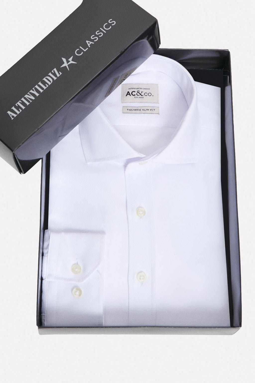 Men's White Special Gift Boxed Slim Fit Num Fit Cut Classic Collar Cotton Amelor Shirt