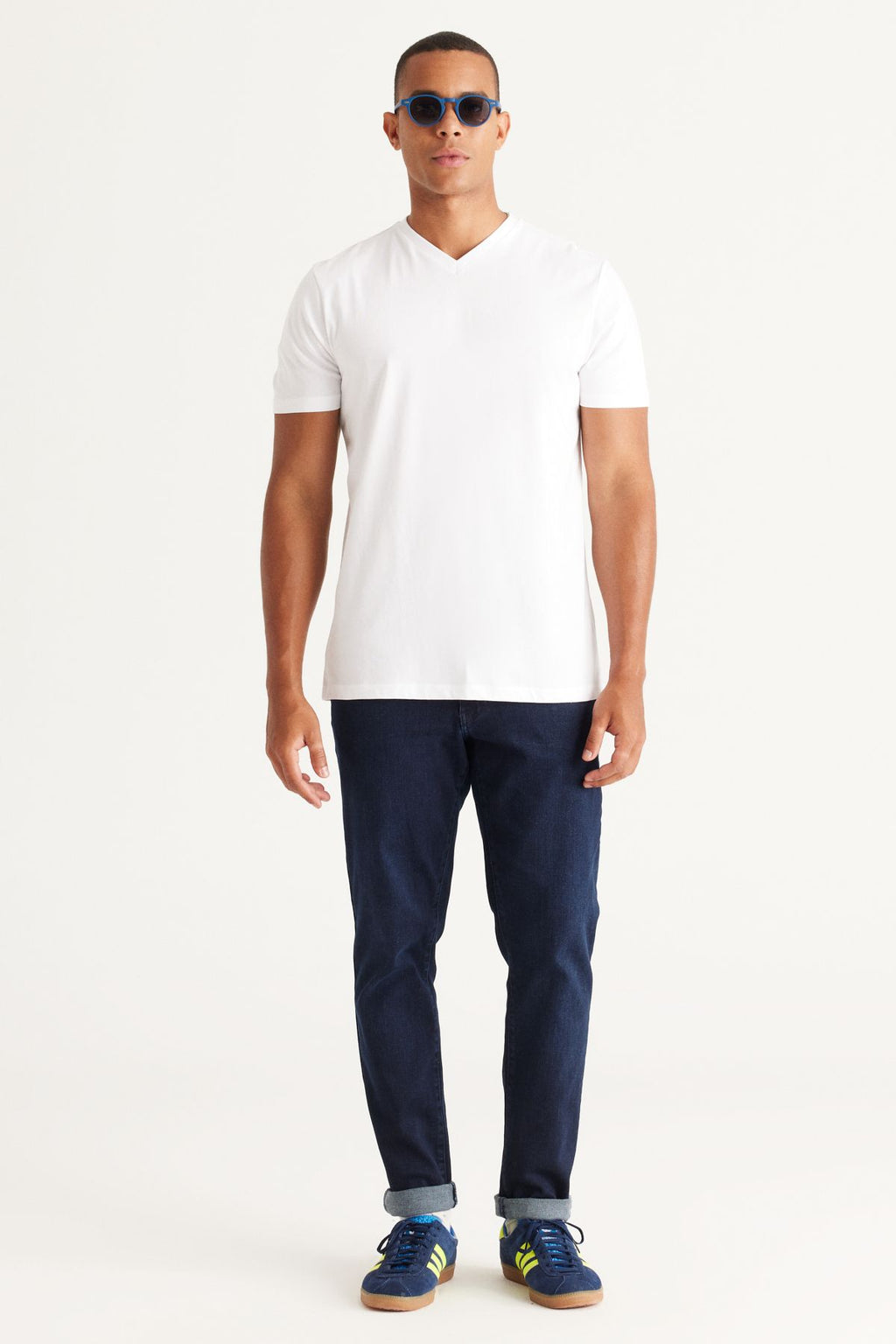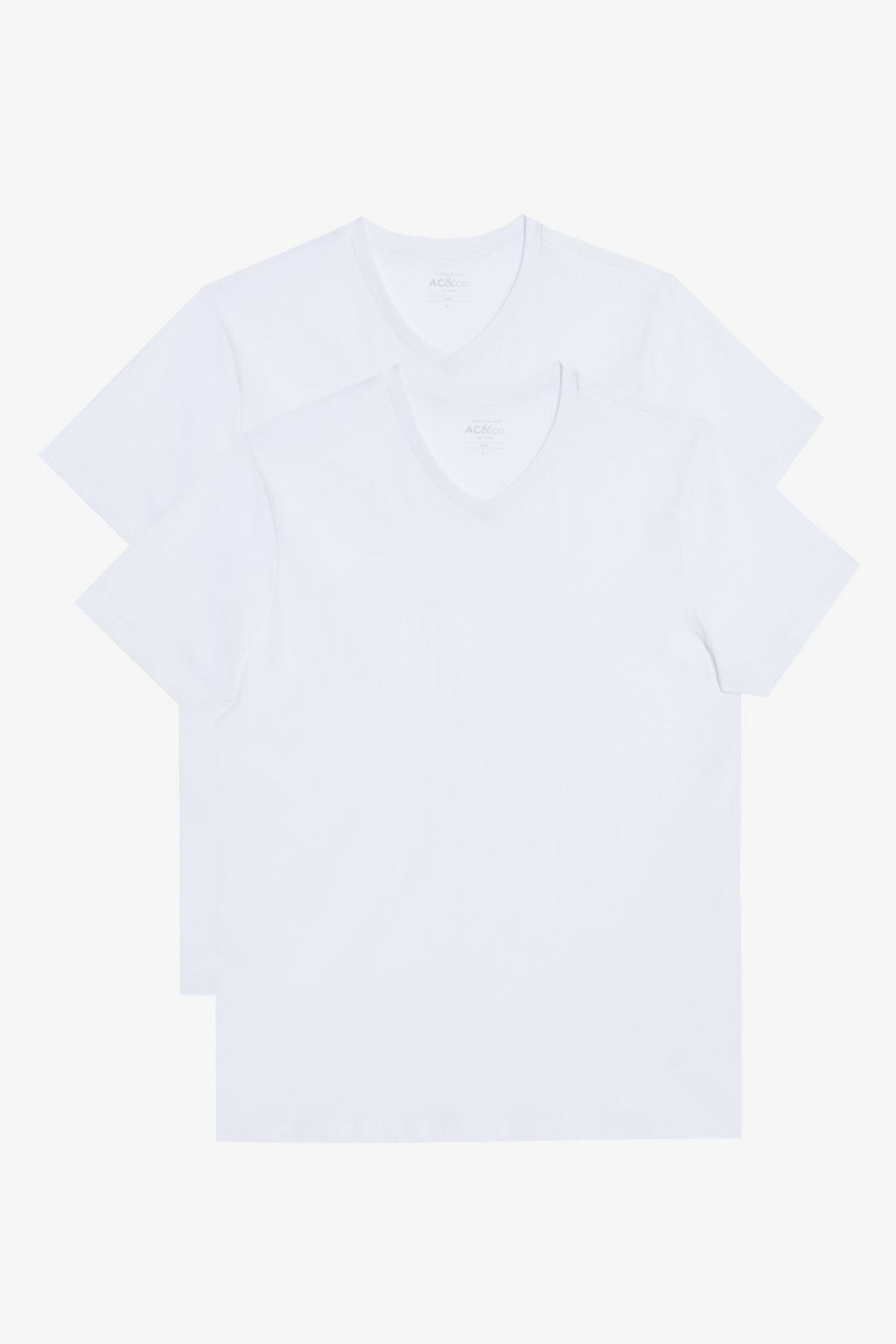 Men's White-White 2 V-neck 100 %Cotton Slim Fit Narrow Cut Basic T-shirt