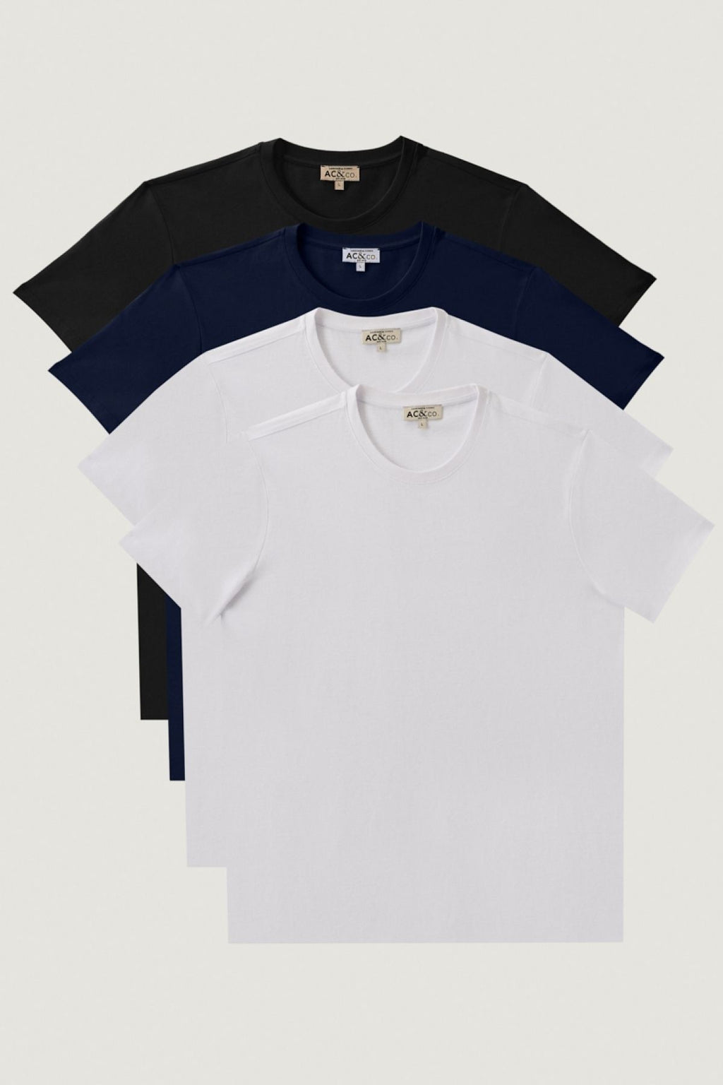 Men's White-White-Sıyah-Lacıvert Slim Fit Bicycle Collar 100 %Cotton 4 Piece Basic T-shirt package