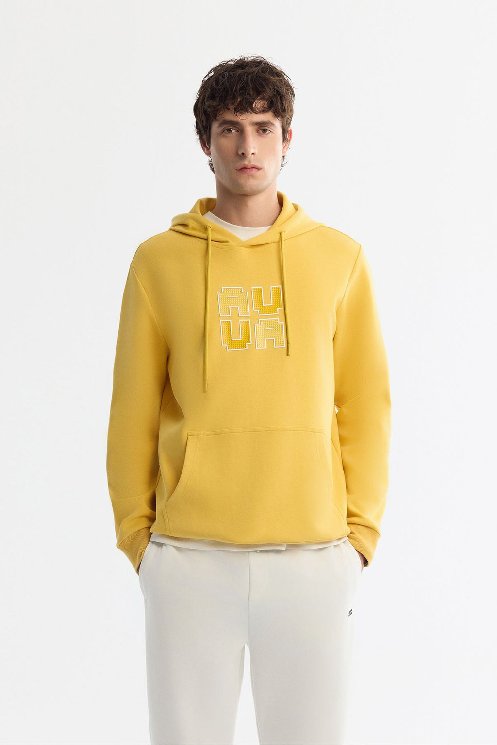 Men's yellow hooded cotton printed elastan sweatshirt a42y1324