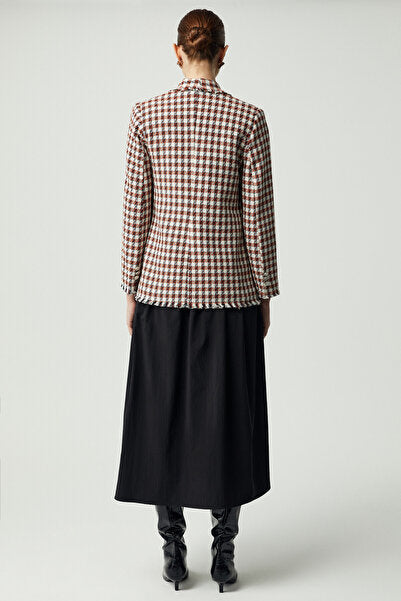 MERAN Women's Jacket Collar Long Sleeve Button Detailed Tweed Orange Jacket