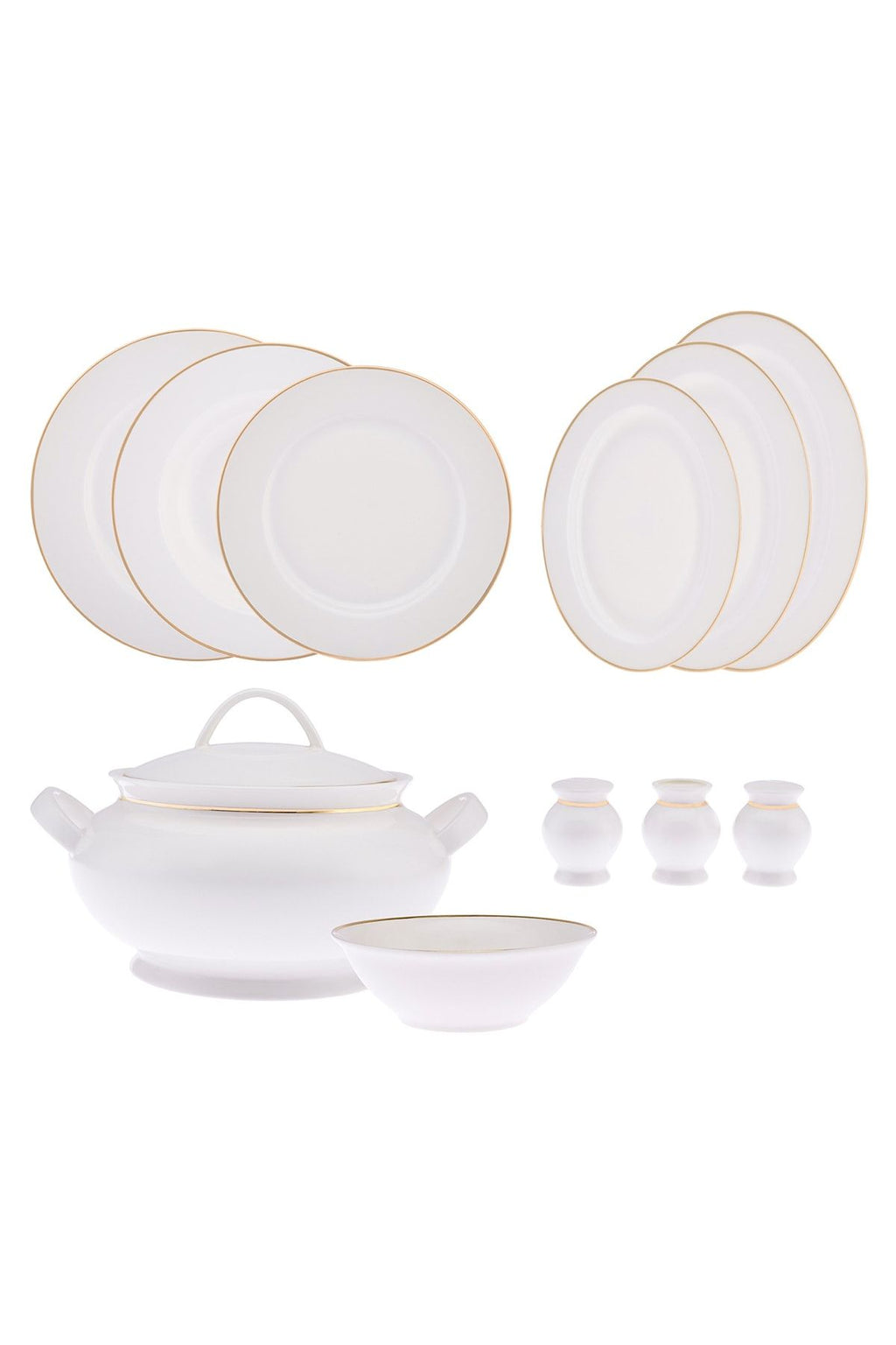 New Marly Porcelain 60 Piece 12 Person Round Dinner Set Gold