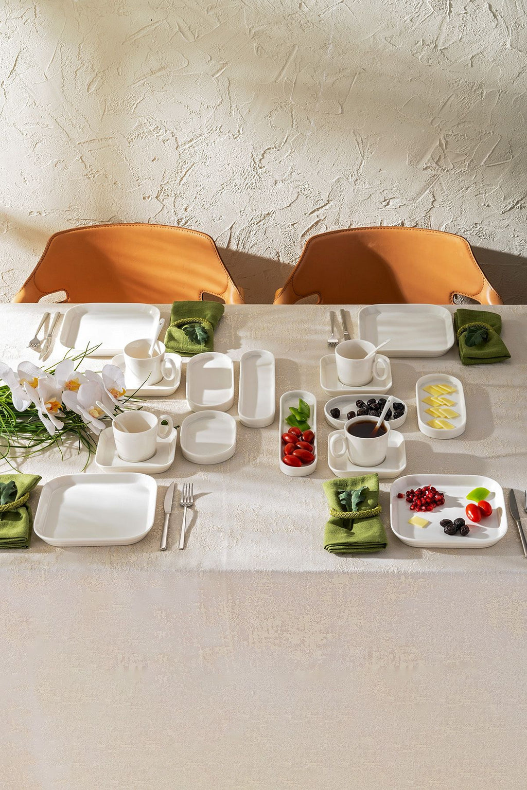 NEW MISRA 30 PIECES 6 PERSON PORCELEEN BREAKFAST SERVICE WHITE
