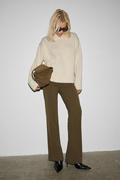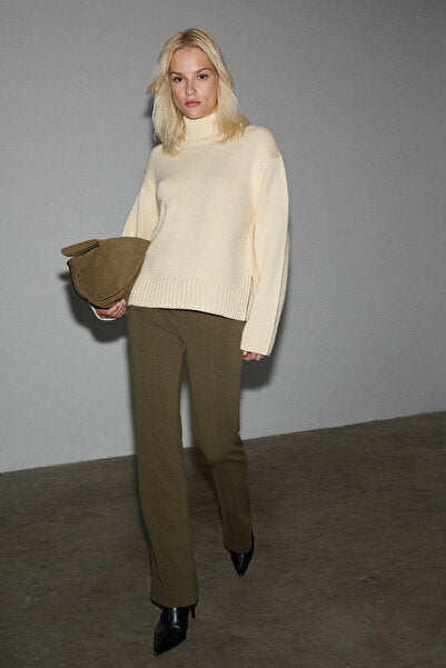 NIRISELLE Women's Stretchy Fabric, Fitted Regular Khaki Trousers with Elastic Waist
