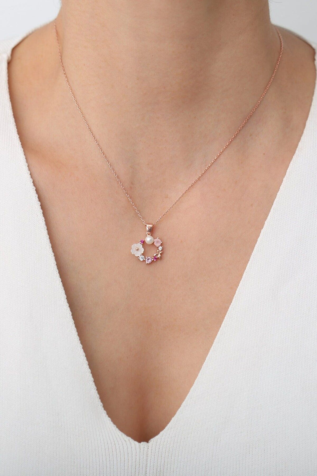 Orchid and colored stone 14 k rose gold -plated women's necklace