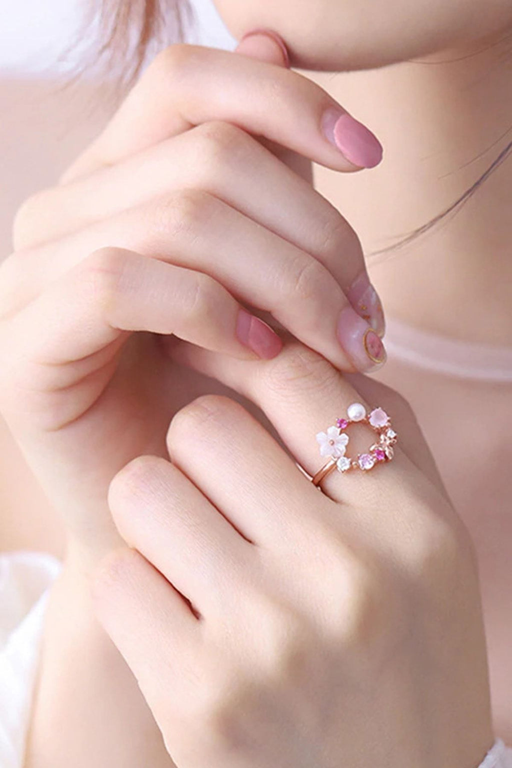 Orchid and Colorful Stone 14k Rose Gold Plated Woman Ring