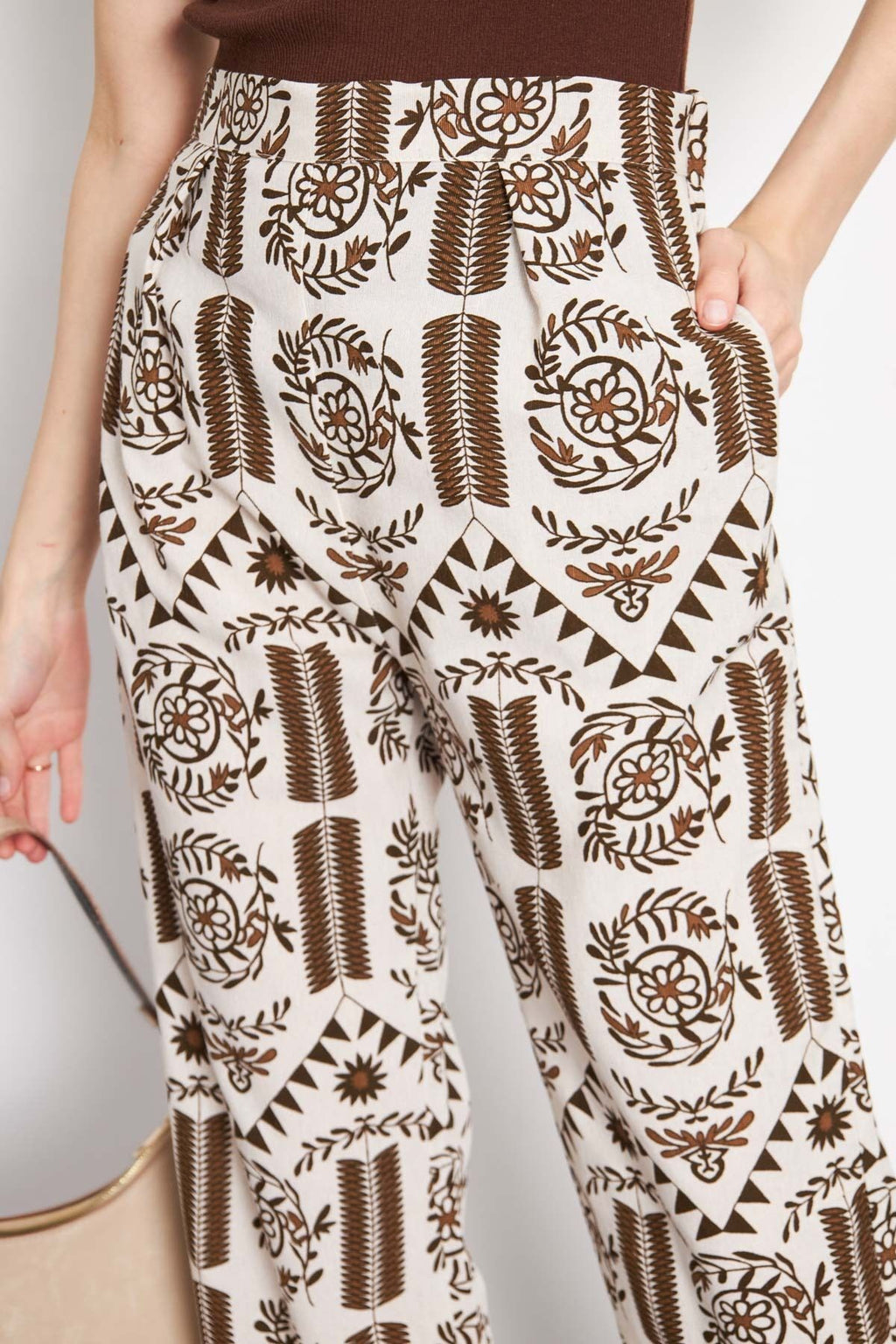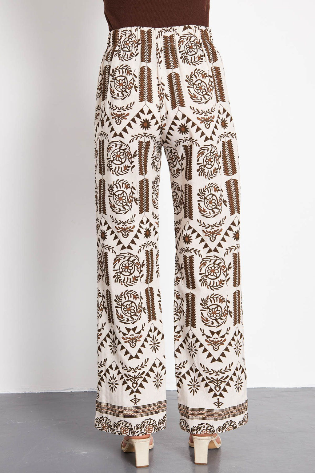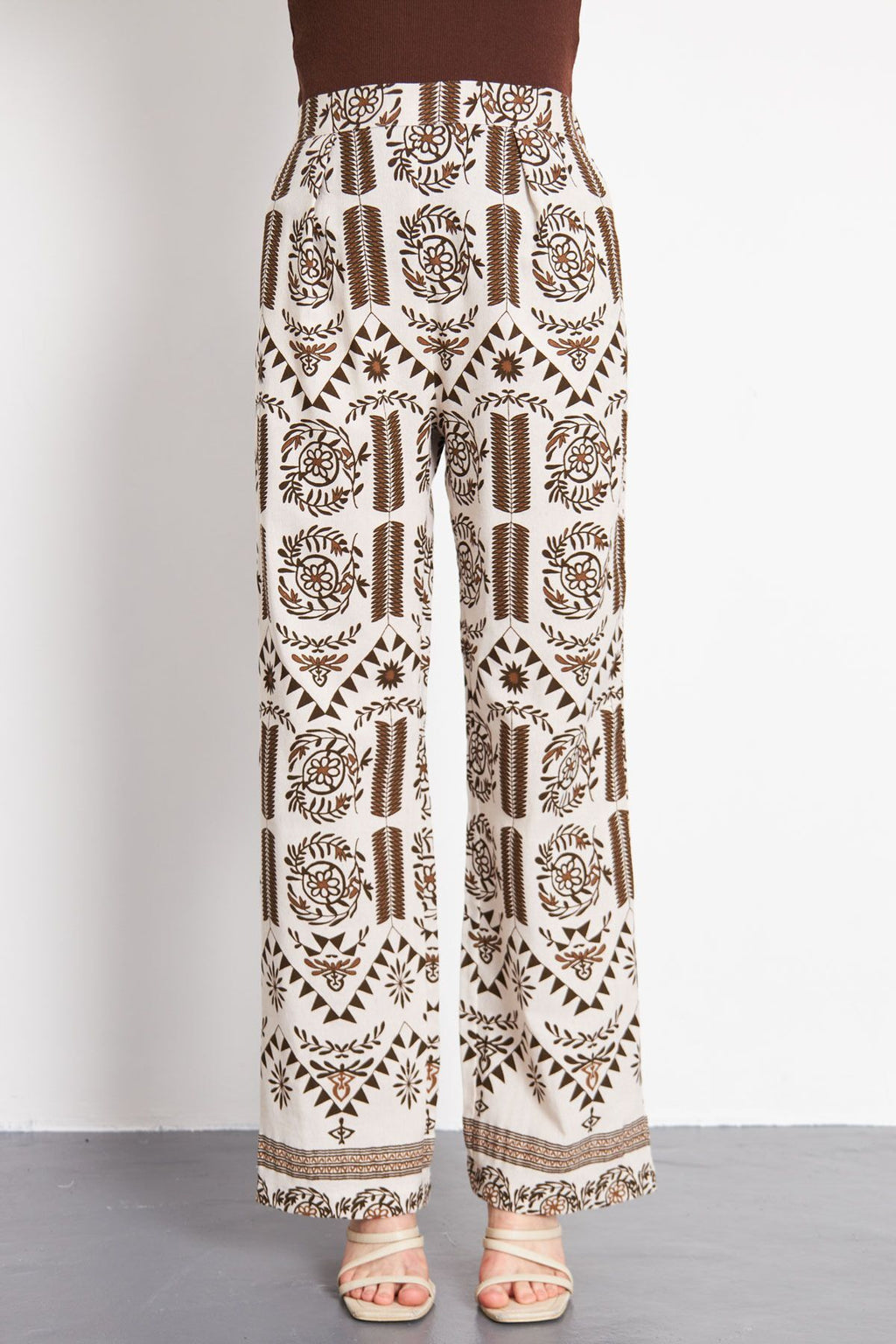 PALAZZO Pants with Female Coffee Linen Looking Patterned Patterned Patterns ARM-24Y001069