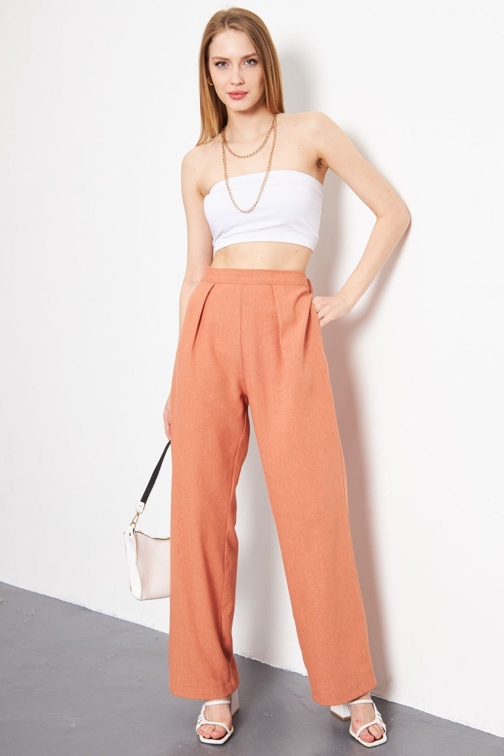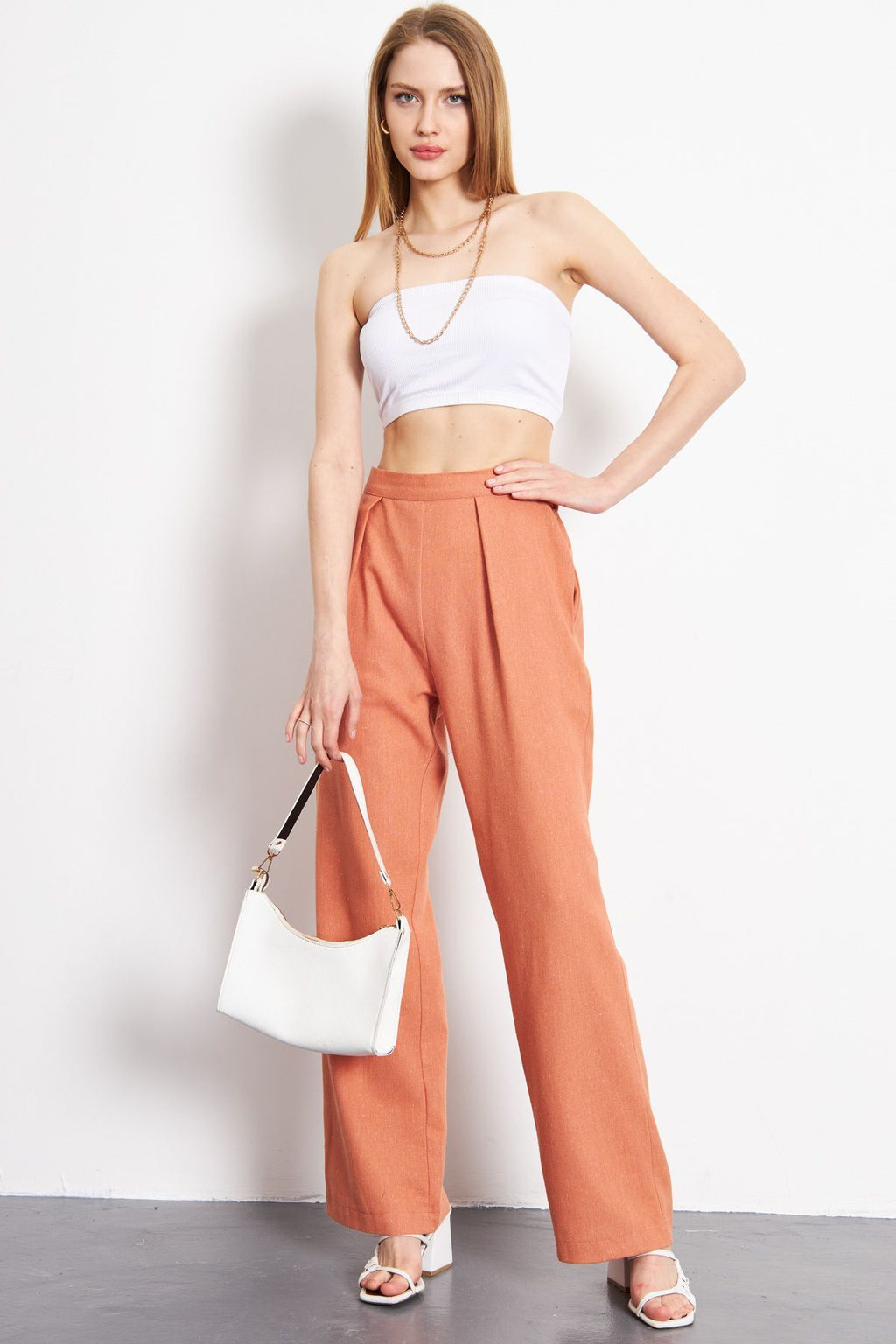 PALAZZO pants with female salmon linen-looking pocket ARM-24Y001070