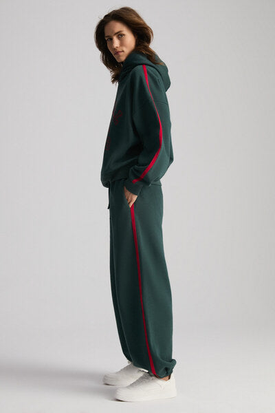 Possıbılity Women's Embroidered Printed Hooded Green Sweatshirt