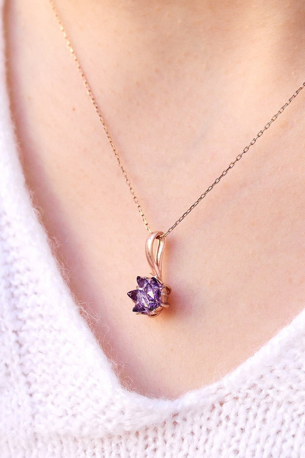 Purple Lotus Flower 14 K Rose Gold Plated Women Necklace