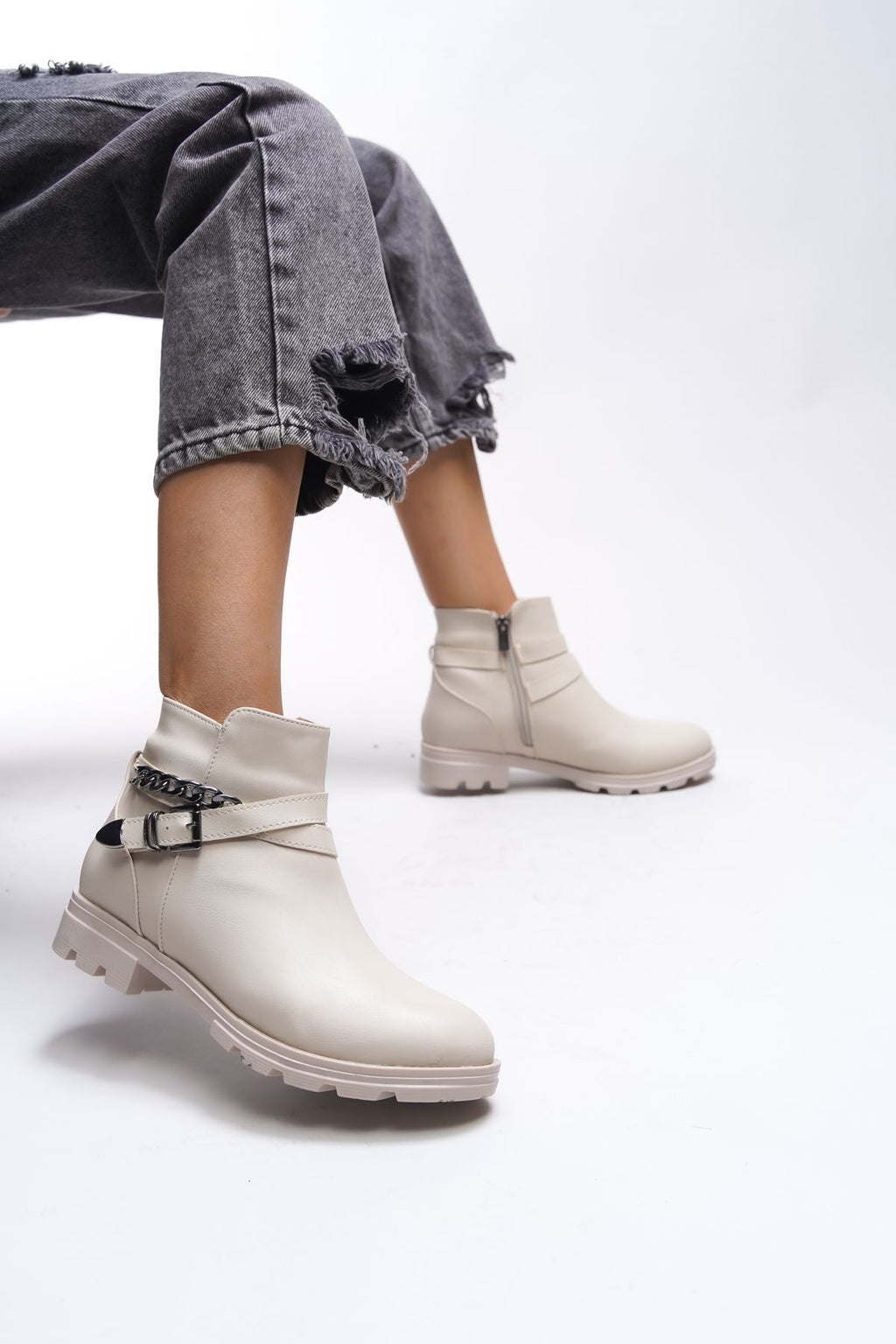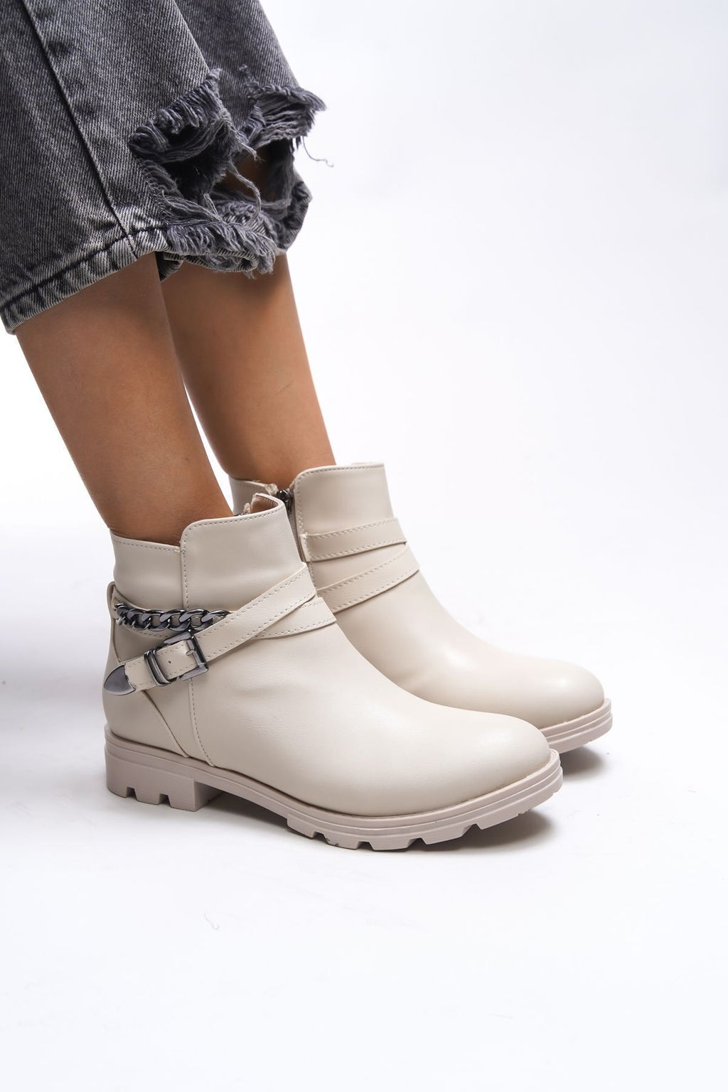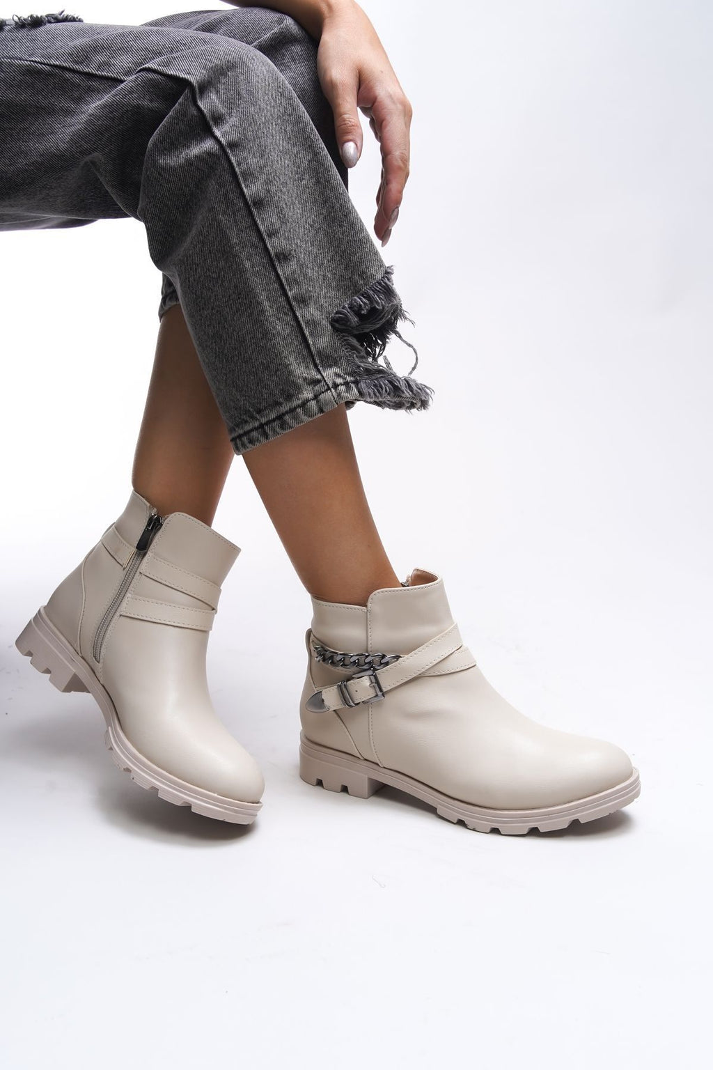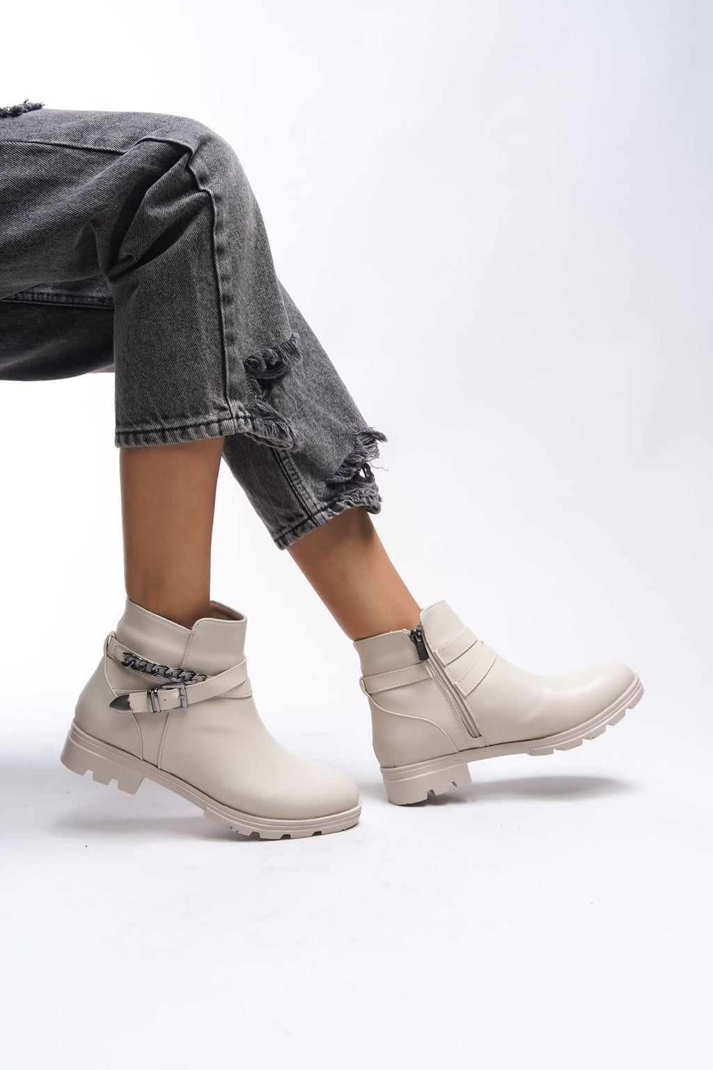 RELRUNIA WOMEN'S CHAIN ​​AND TOKA DETAILED BOT BEGY SKIN