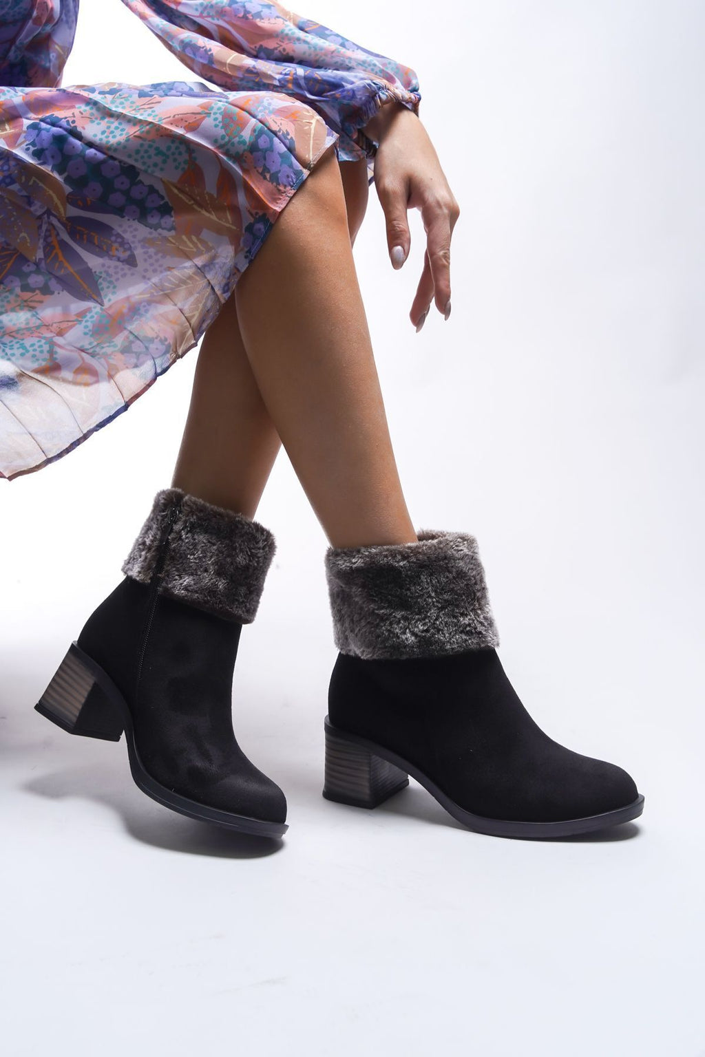 Rielradh Kadın Kürk Detaylı Topuklu Bot 0012501 Siyah Süet