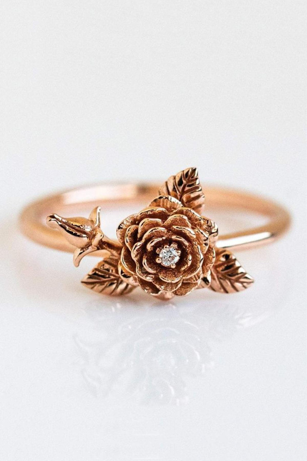Gül Motif Taşlı 14k Rose Gold Kaplama Kadın Yüzük