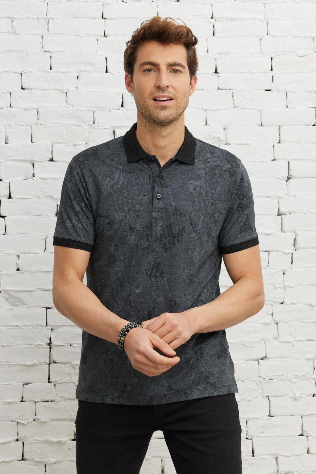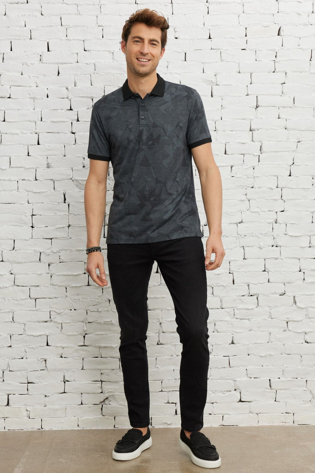 Slim fit narrow cut Polo Yaka Jacquard T -shirt