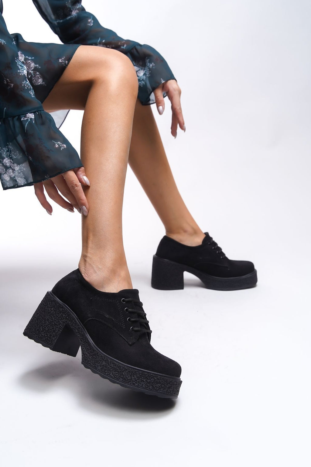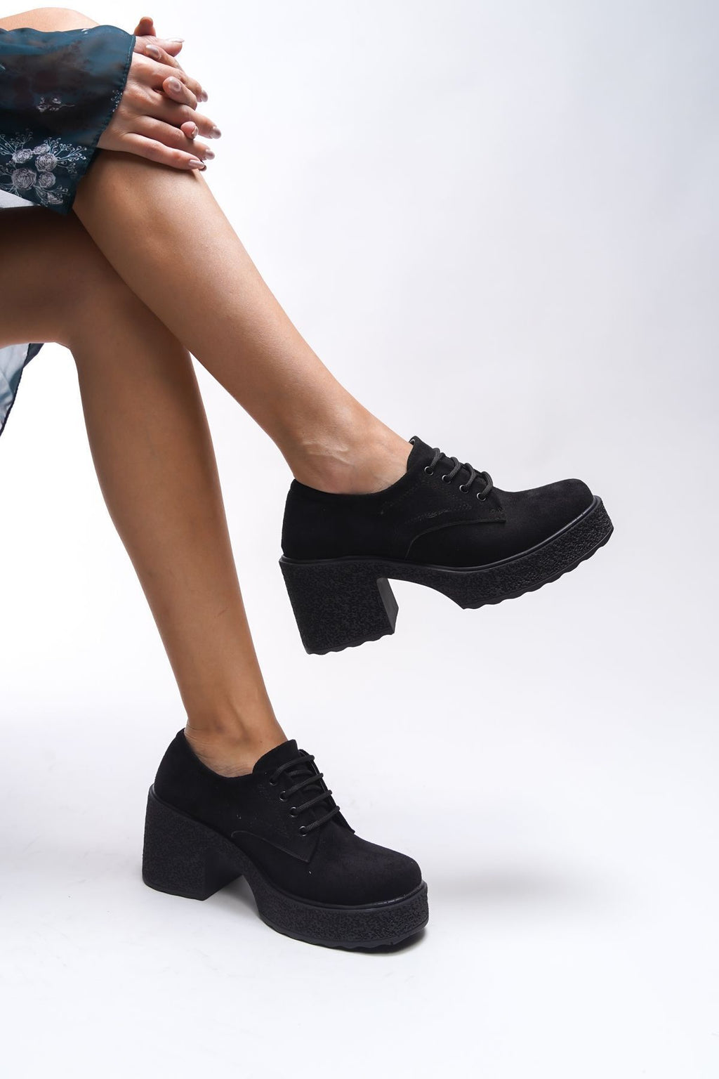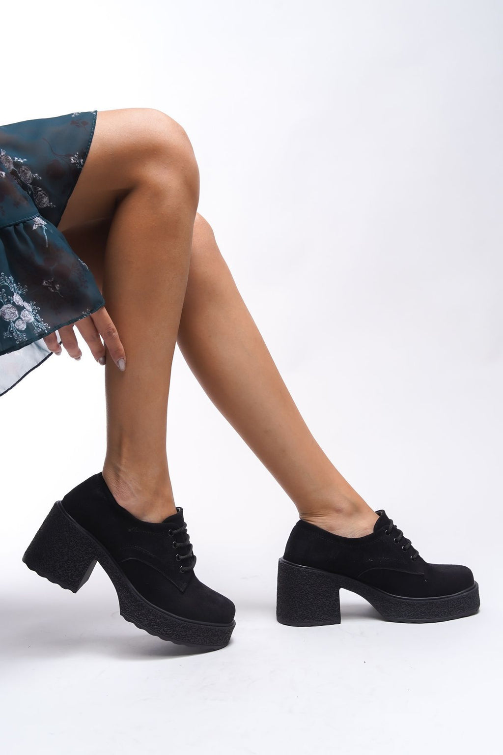 Thimdrarn Women Heels Lace Loafer 00121540 Black Suede