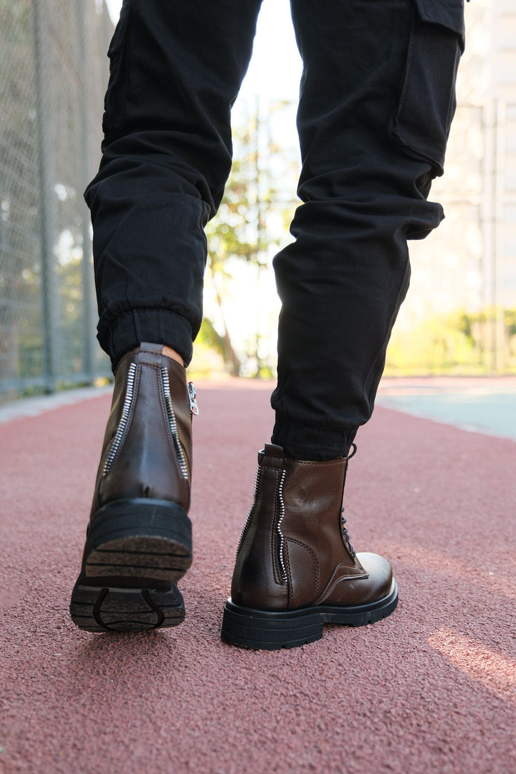 Unisex Fermuarlı Postal Bot 0012695 Kahverengi