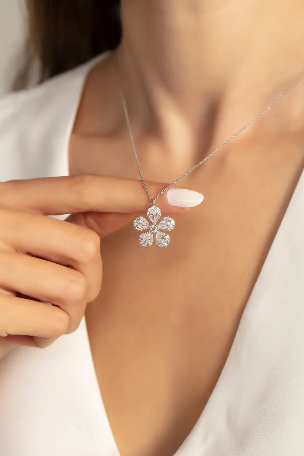 White Drop Stone Flower Silver Plated Women Necklace