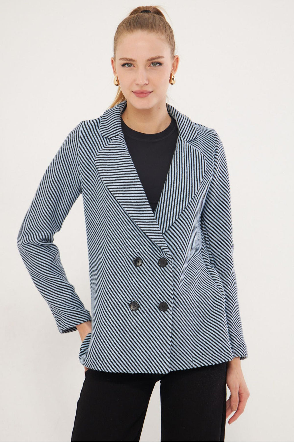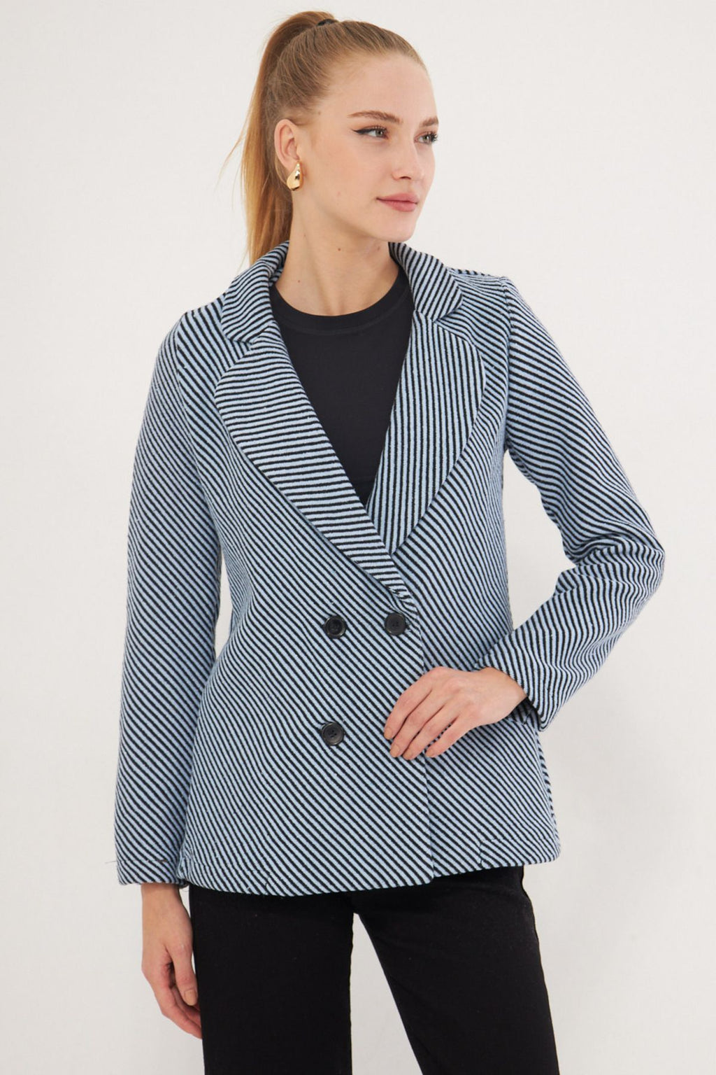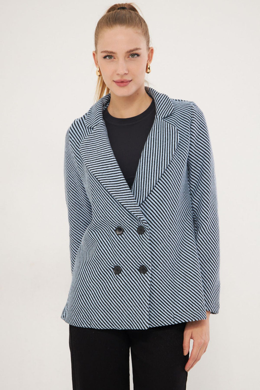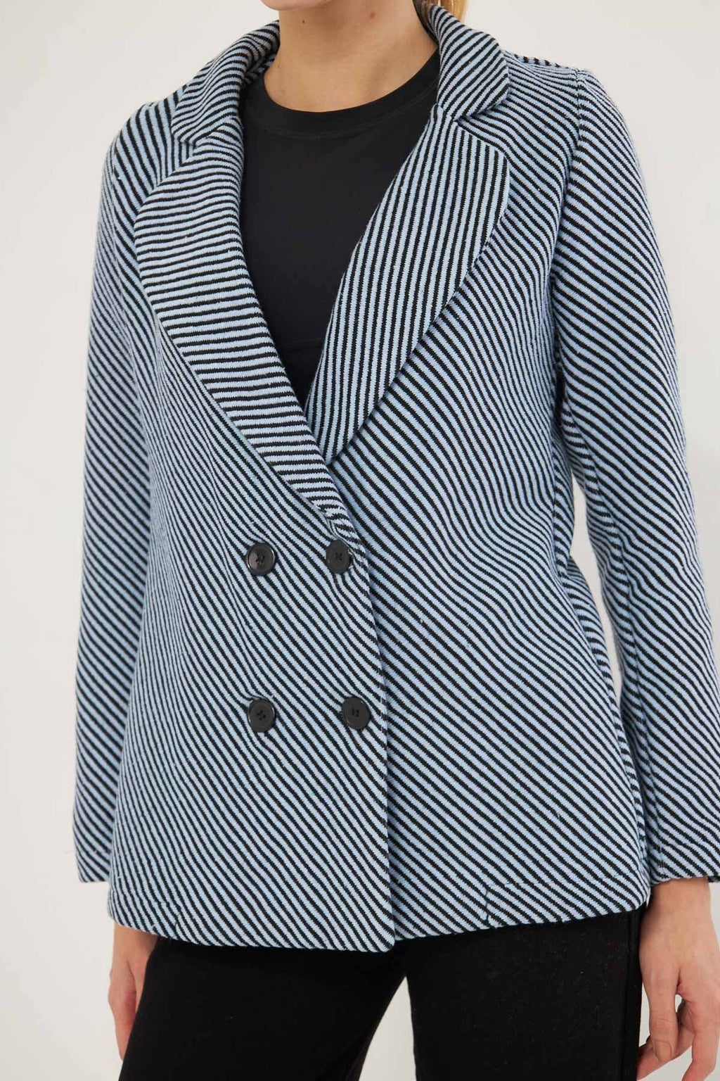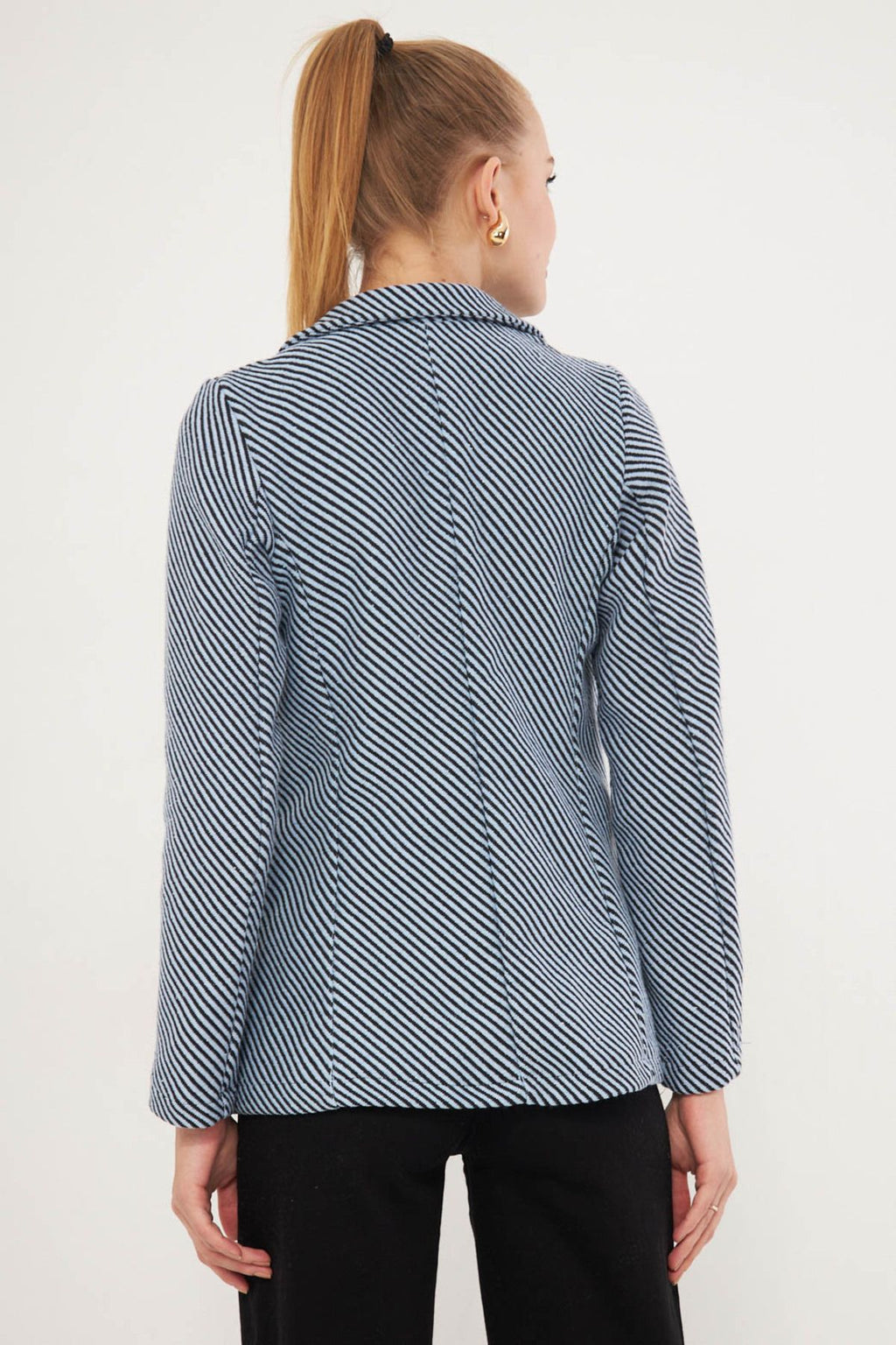 Woman Baby Blue Line Patterned Four buttoned stamp jacket ARM-24K001037