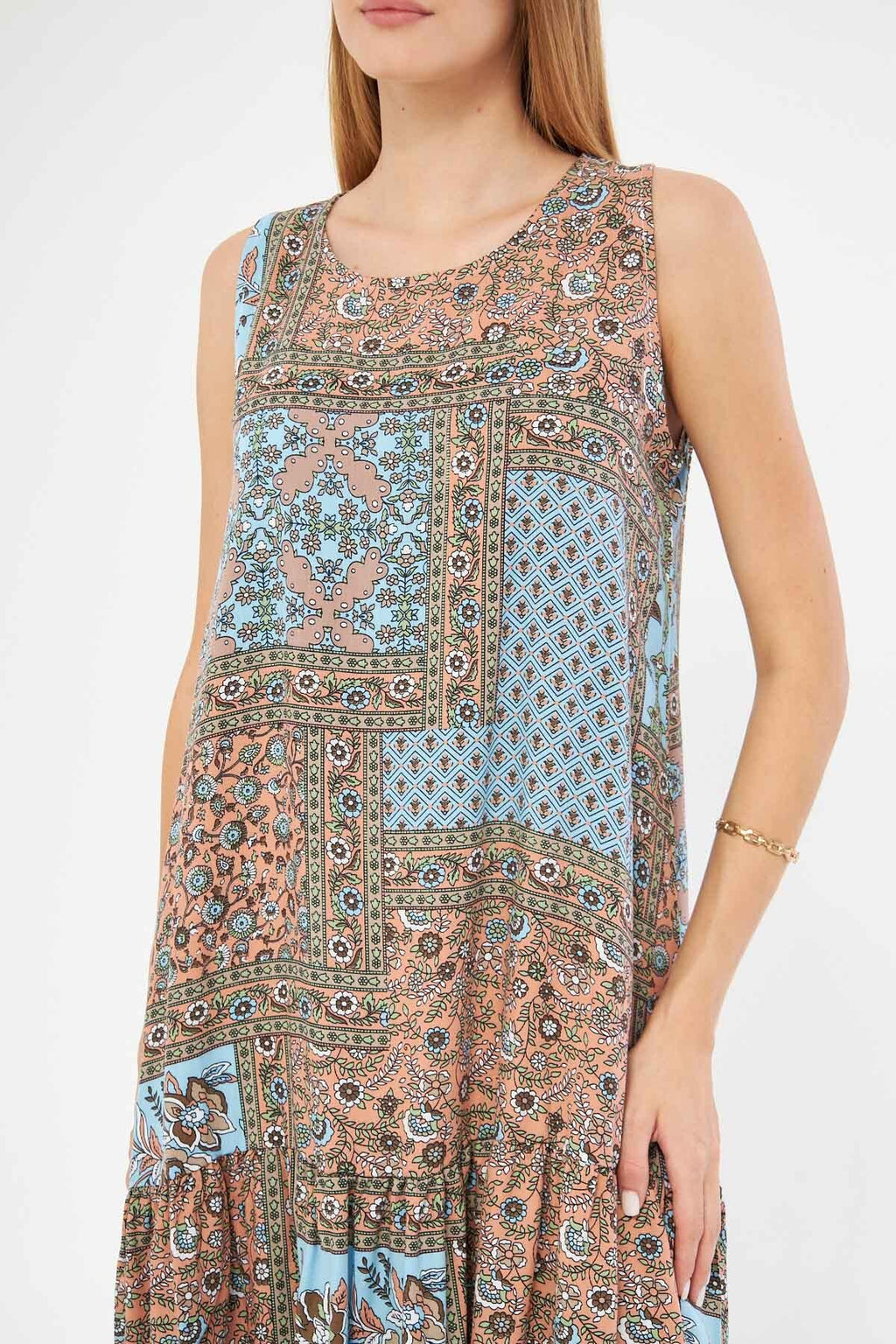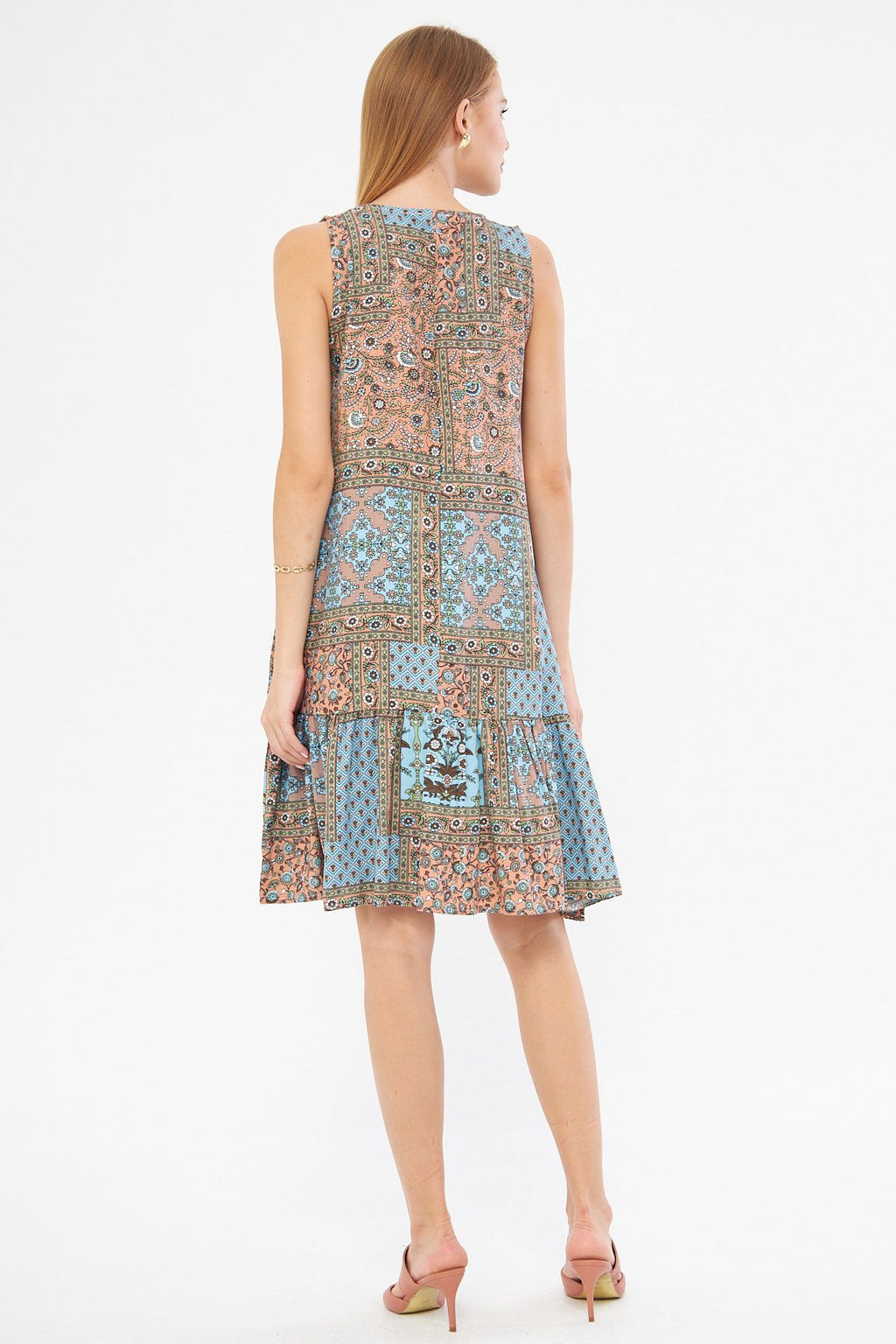 Woman Baby Blue Patterned Sleeveless Skirt Ruffed Dress ARM-22K001142