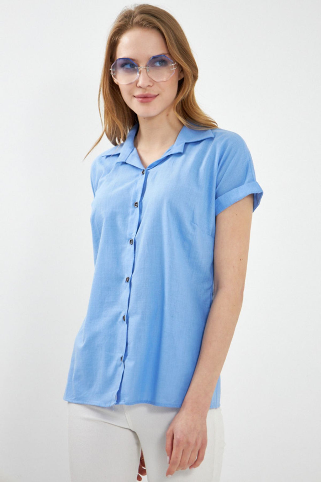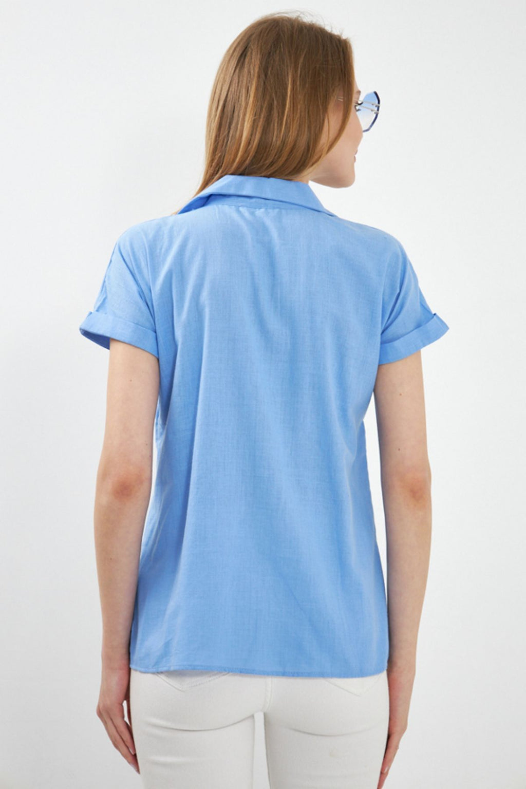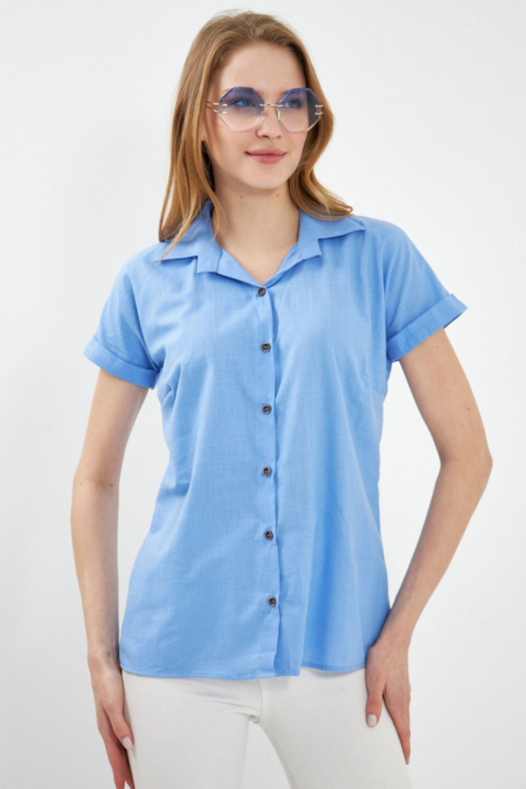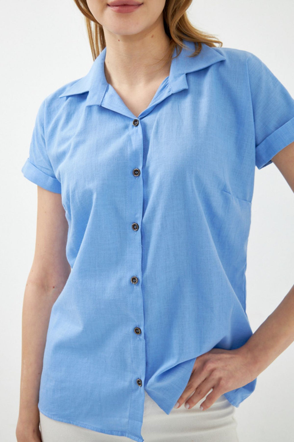 Woman Baby Blue Short Sleeve Linen Shirt ARM-24Y001038