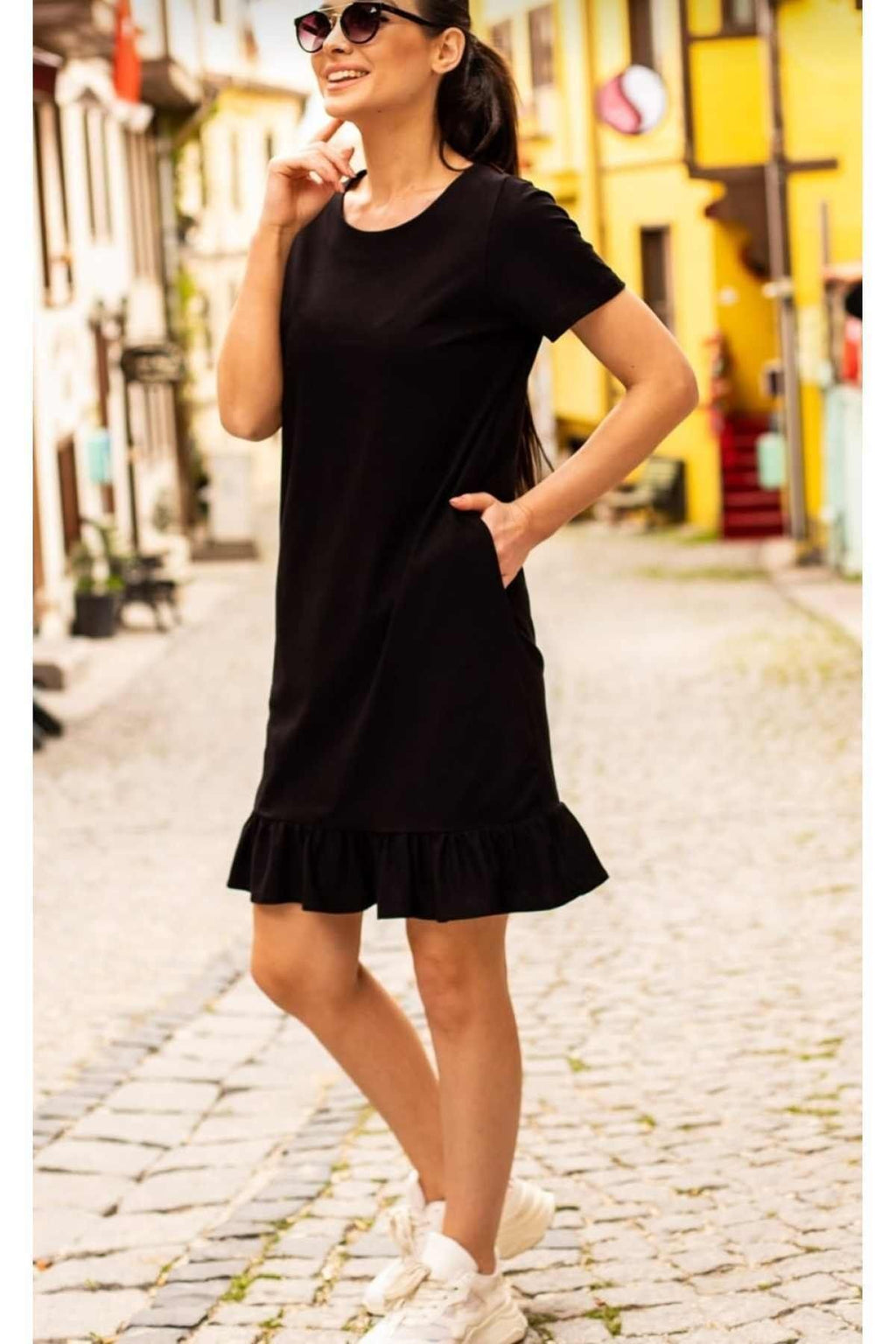 Woman Black Short Sleeve Six Ruffle Dress ARM-20Y001032