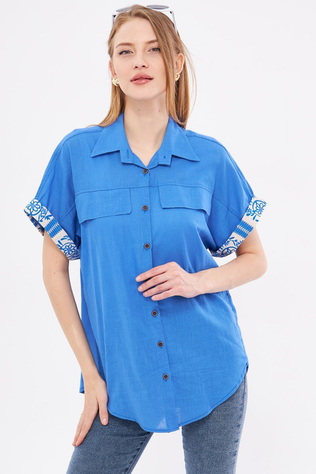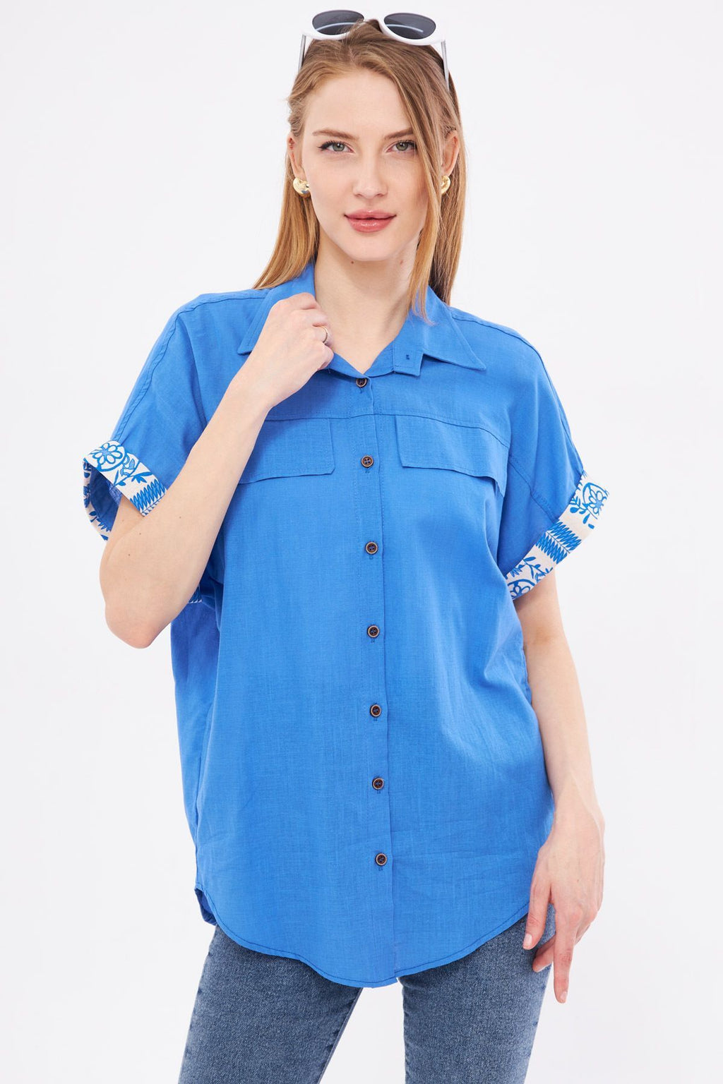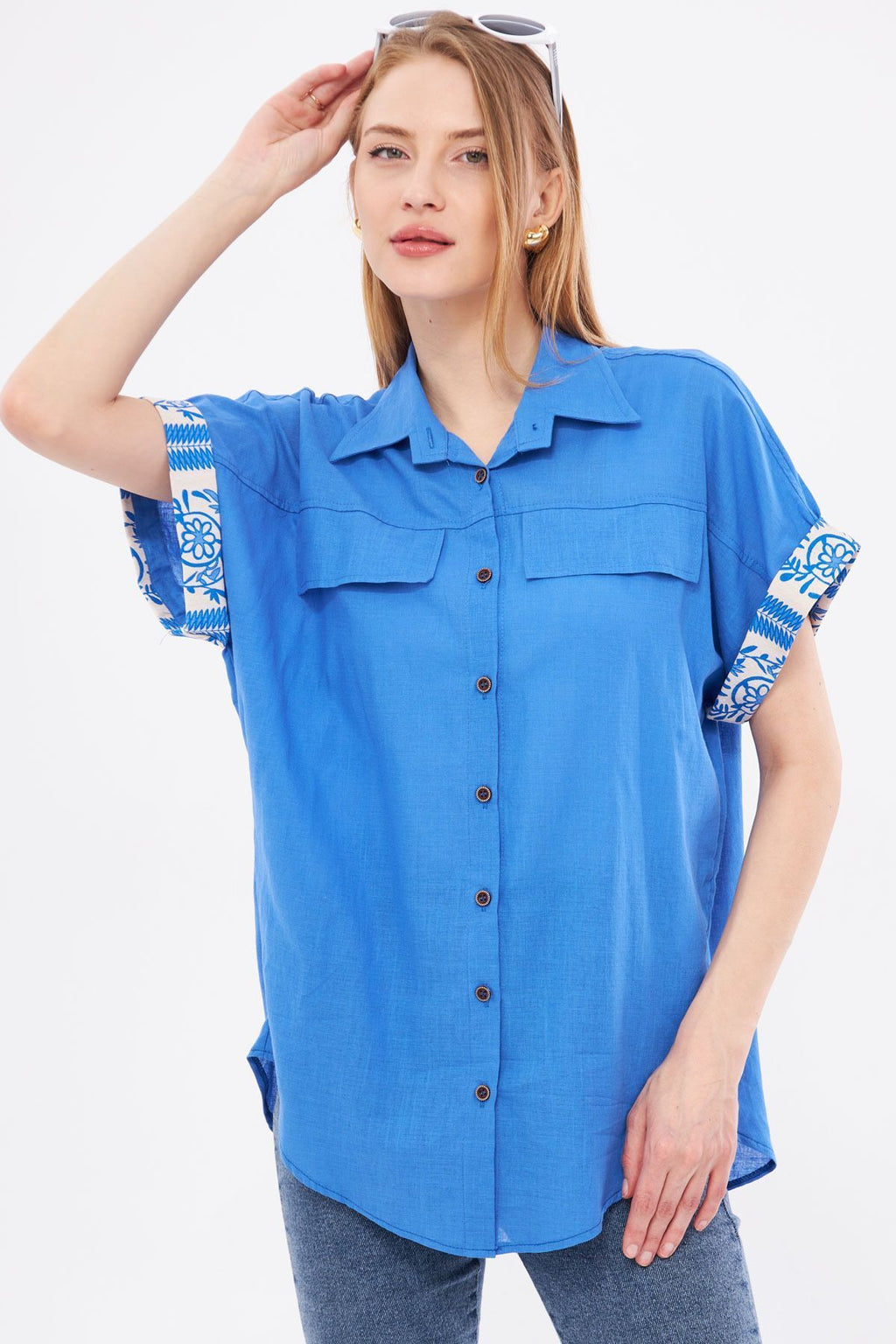 Woman Blue Oversize double arm detailed shirt ARM-24Y001075