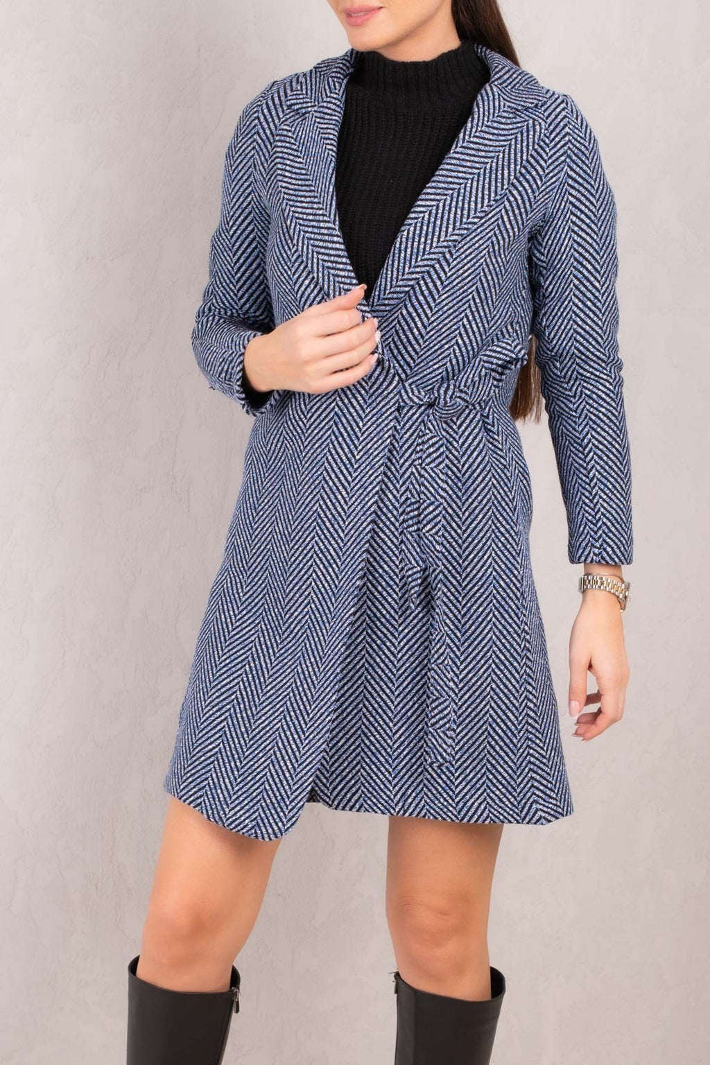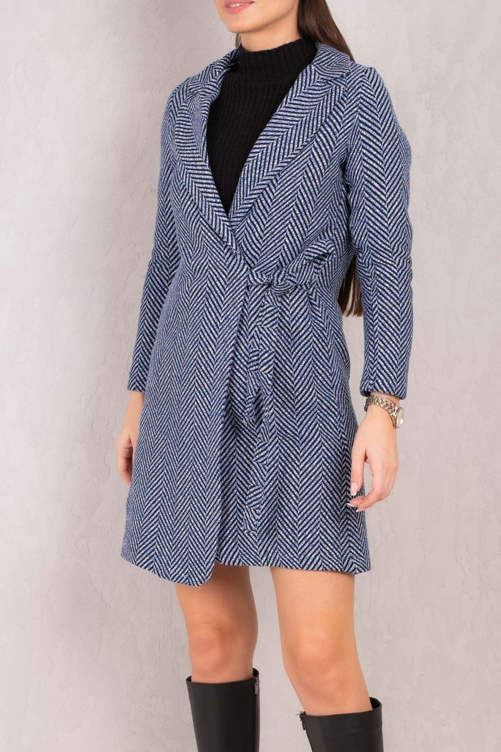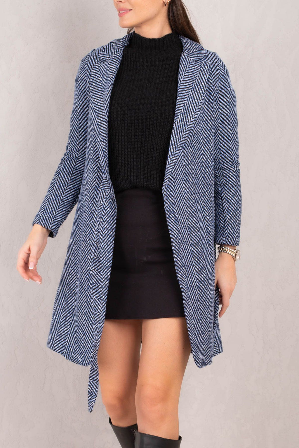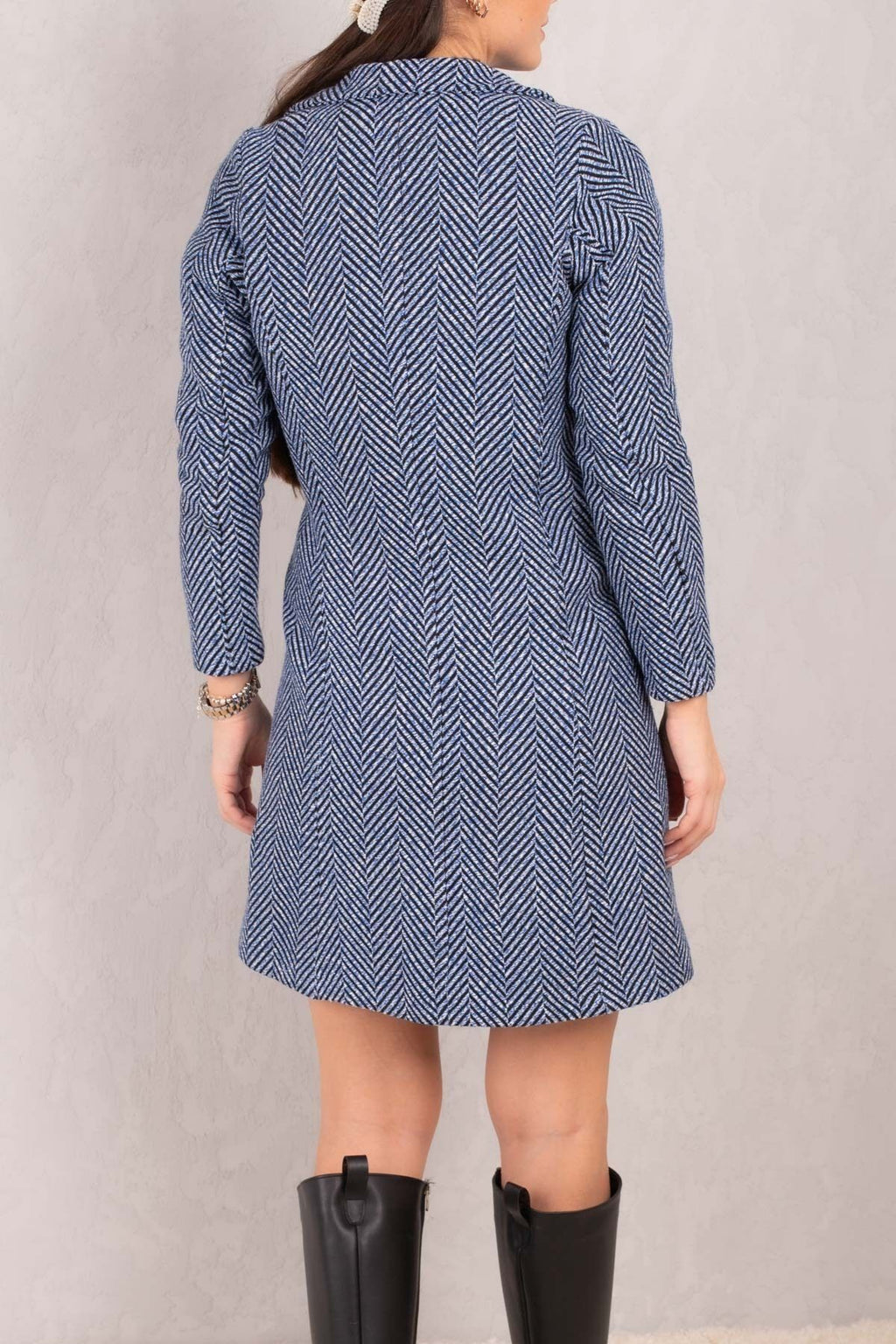 Woman Blue Side Fish Pattern Pattern Long Stamp Coat ARM-24K001010