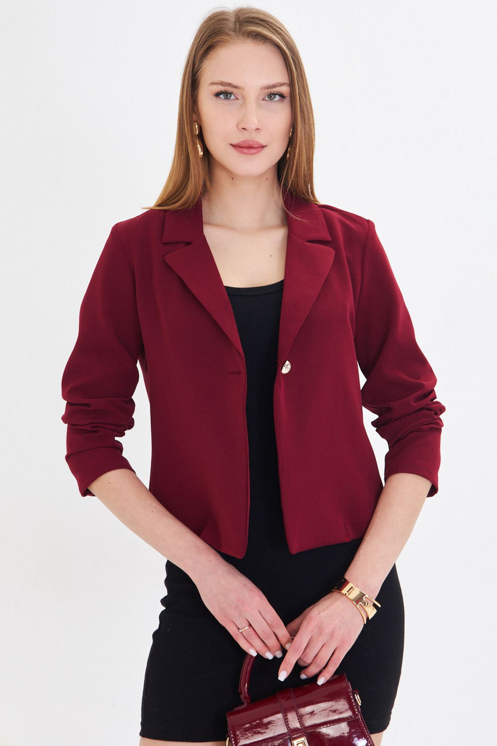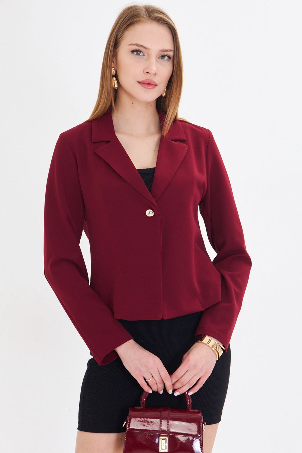 Woman Bordeaux Single Button Crop Jacket ARM-221237