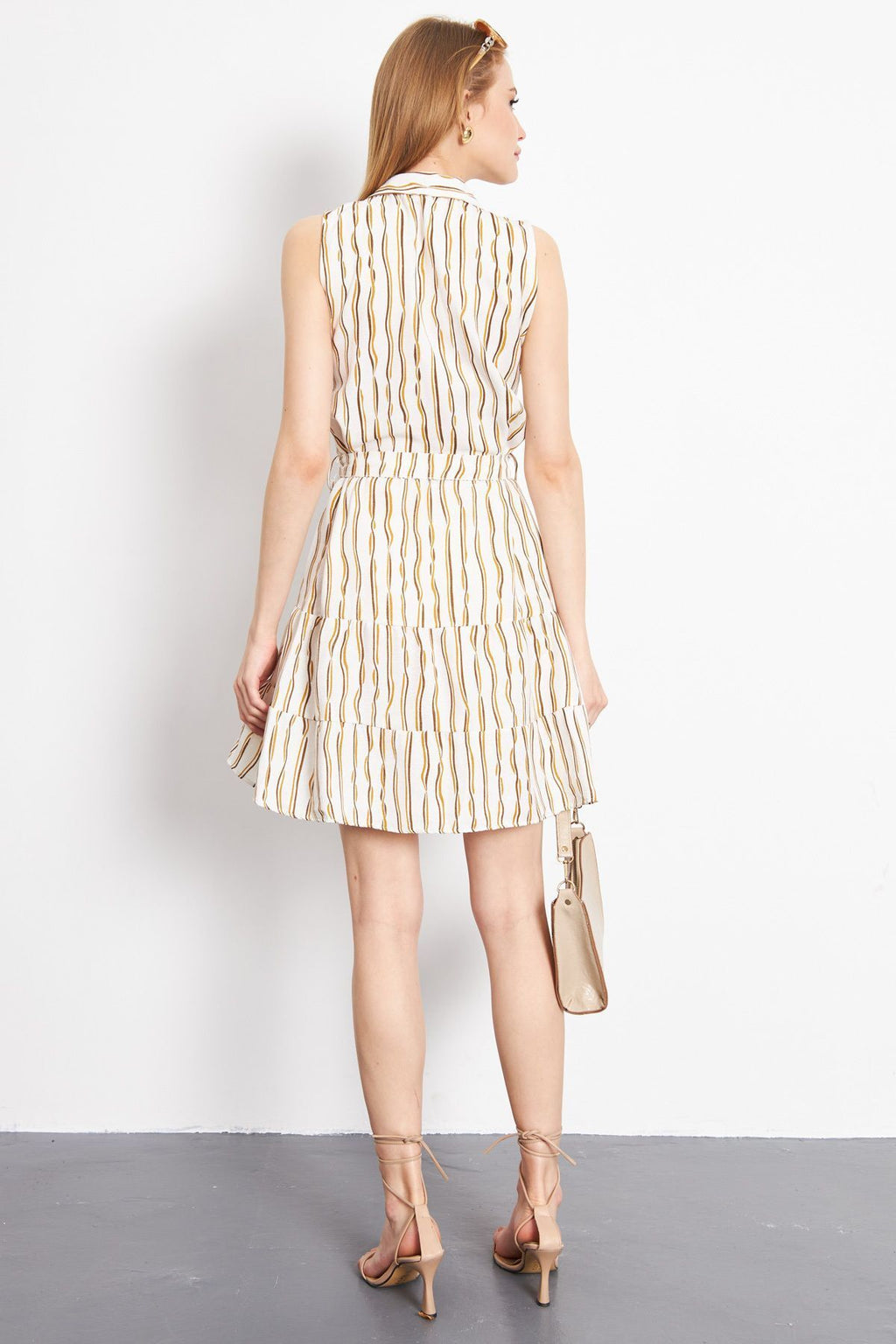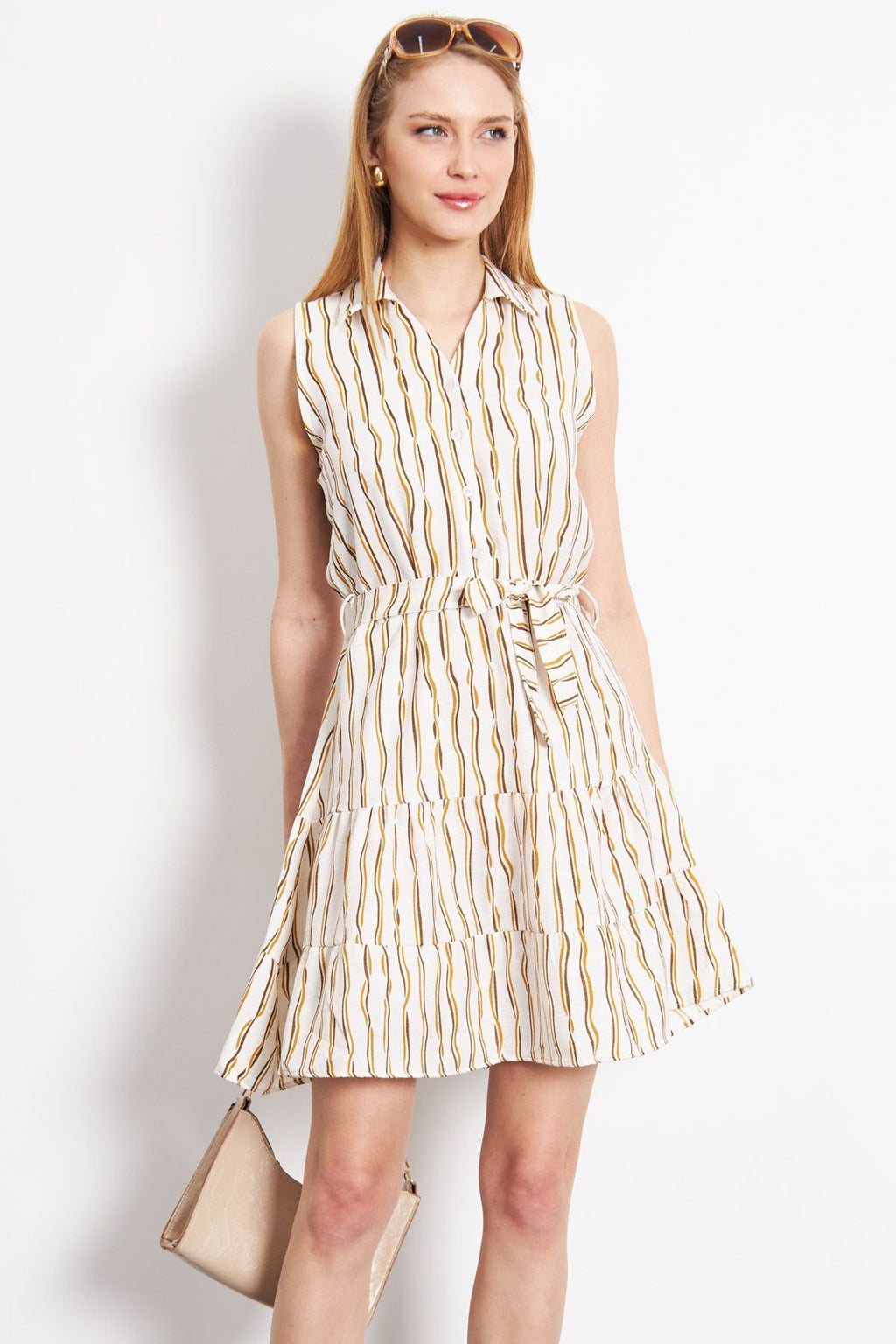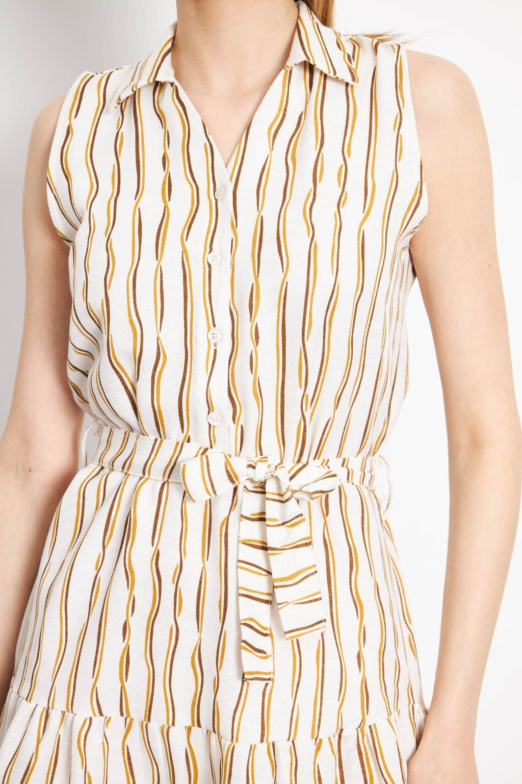 Woman Camel front buttoned waist arched sleeveless dress ARM-24Y001066