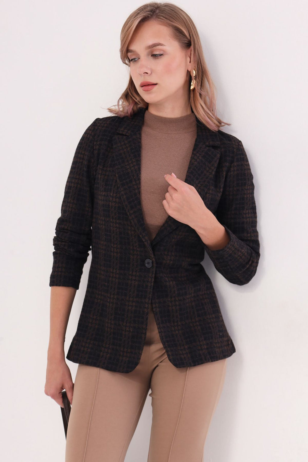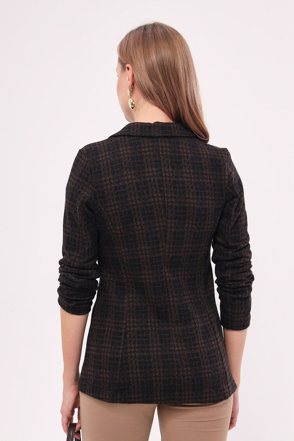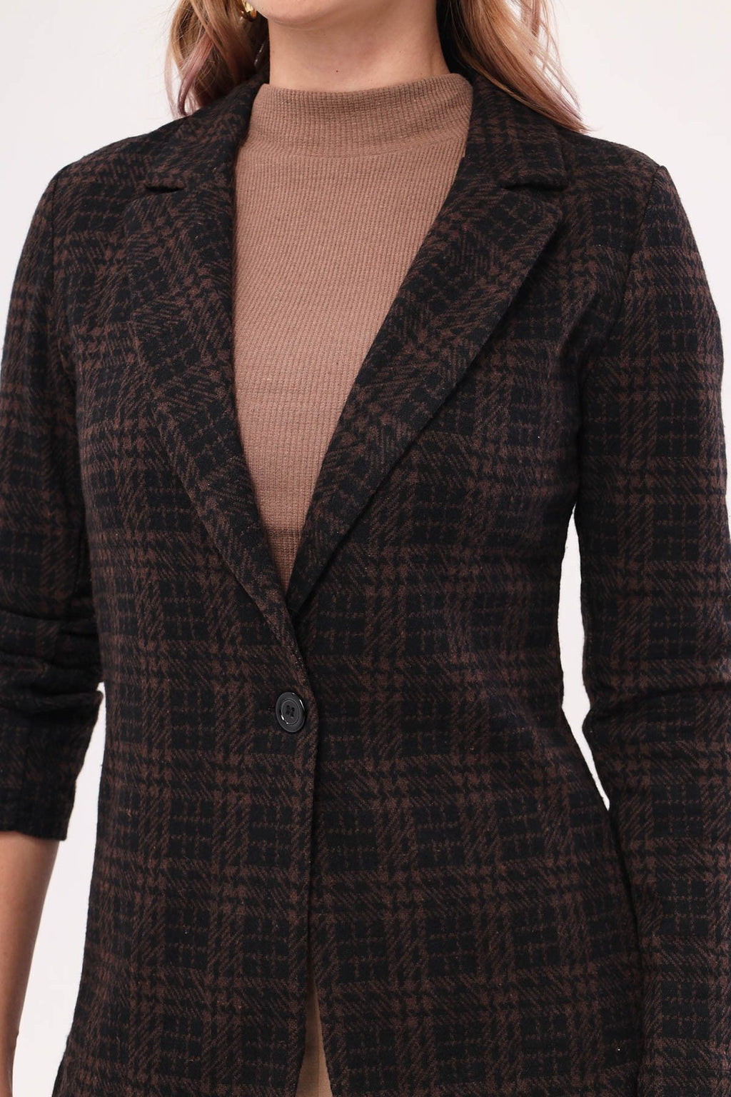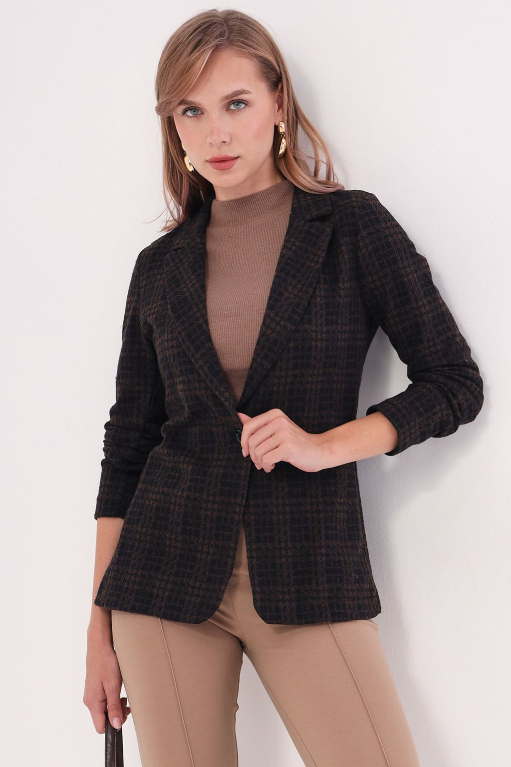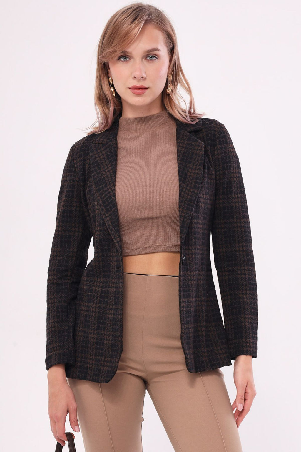 Woman Coffee Coffee Single button with a single button plaid jacket ARM-19K001131